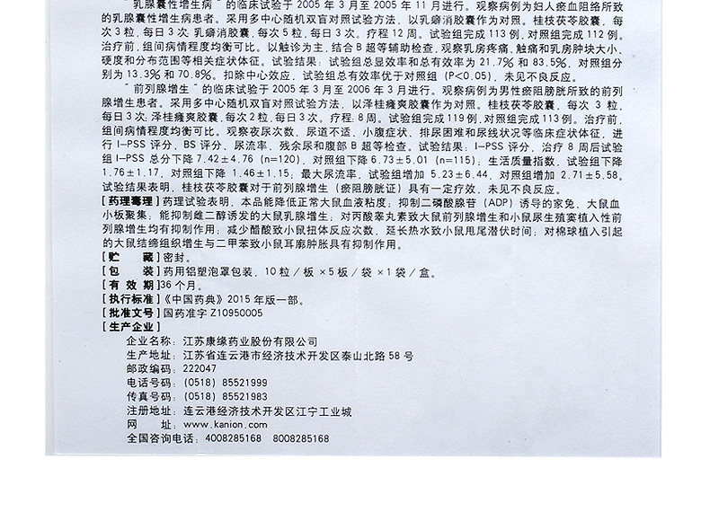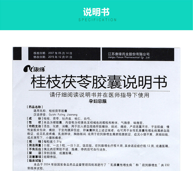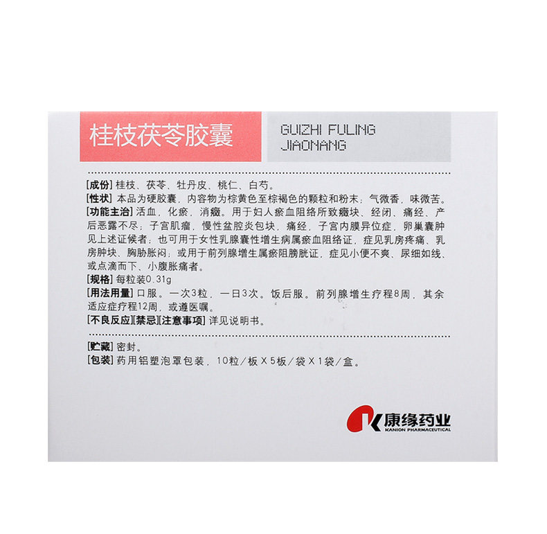 康缘 Капсула Guizhi Poria 0,31G*50 капсулы/коробку комочек молочной железы, эндометриоз эндометриоз, боль в нижней части живота, кистозная гиперплазия молочной железы, кисты заболеваний, некомфортные хронические воспалительные блоки с псевдонимом