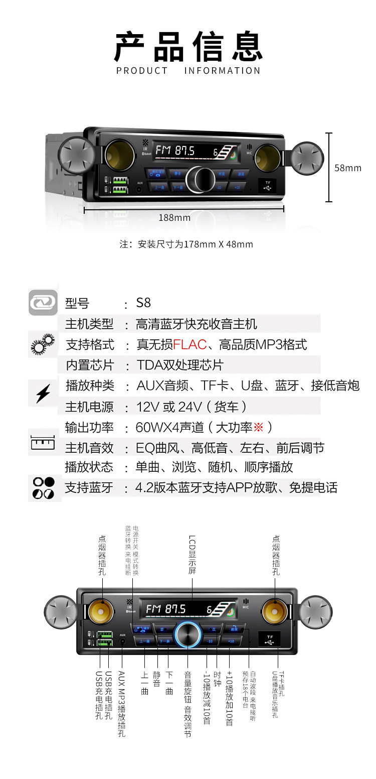 Автомобильная радио GM Bluetooth Mp3 Player 24V Plug -Truck -IN Машинный автомобиль Wuling Light Modization CD