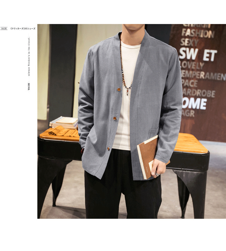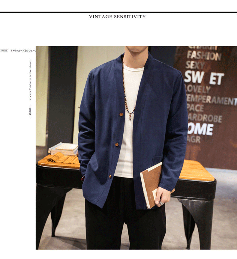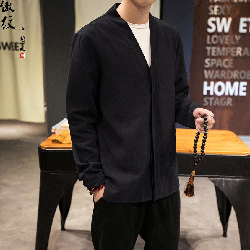 Ретро куртка, осеннее ханьфу, китайский стиль, из хлопка и льна, большой размер