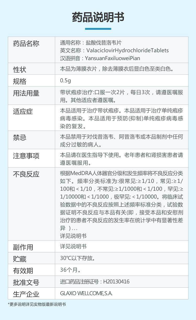 维德思 /Valtrex Plucated Cocchen Coschen Таблетки 0,5 г*10 таблеток/коробка маленькая скорость пузырьков вирус герпеса, инфицированные черепичной черепицей, маленькой сыпи, генитального герпеса, простых герпеса