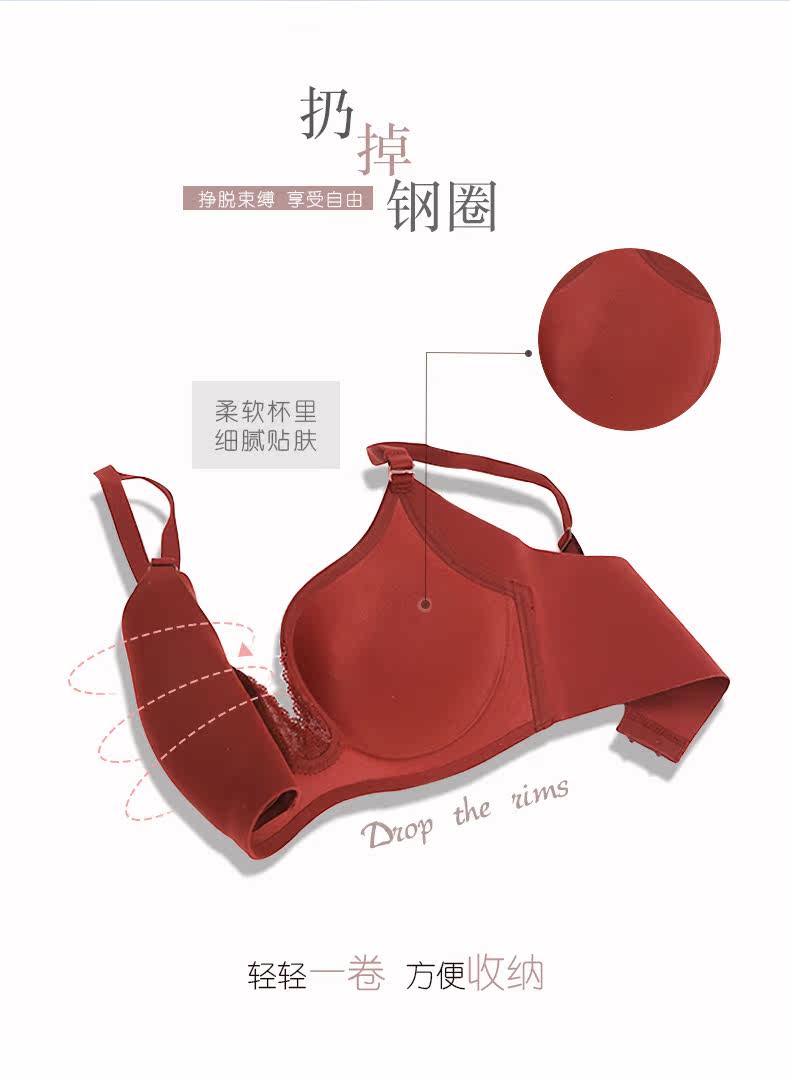 [Vipshop] Нацеливание красного нижнего белья женского по коже Yue без поддержки собирает грудь женских бюстгальтеров AM173601