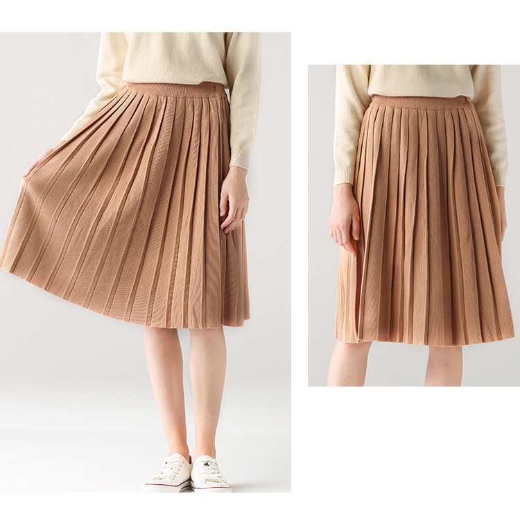 艾米恋 Трикотажная длинная юбка в складку, средней длины, длина макси, А-силуэт, эластичная талия