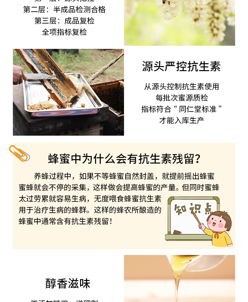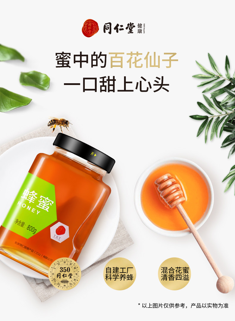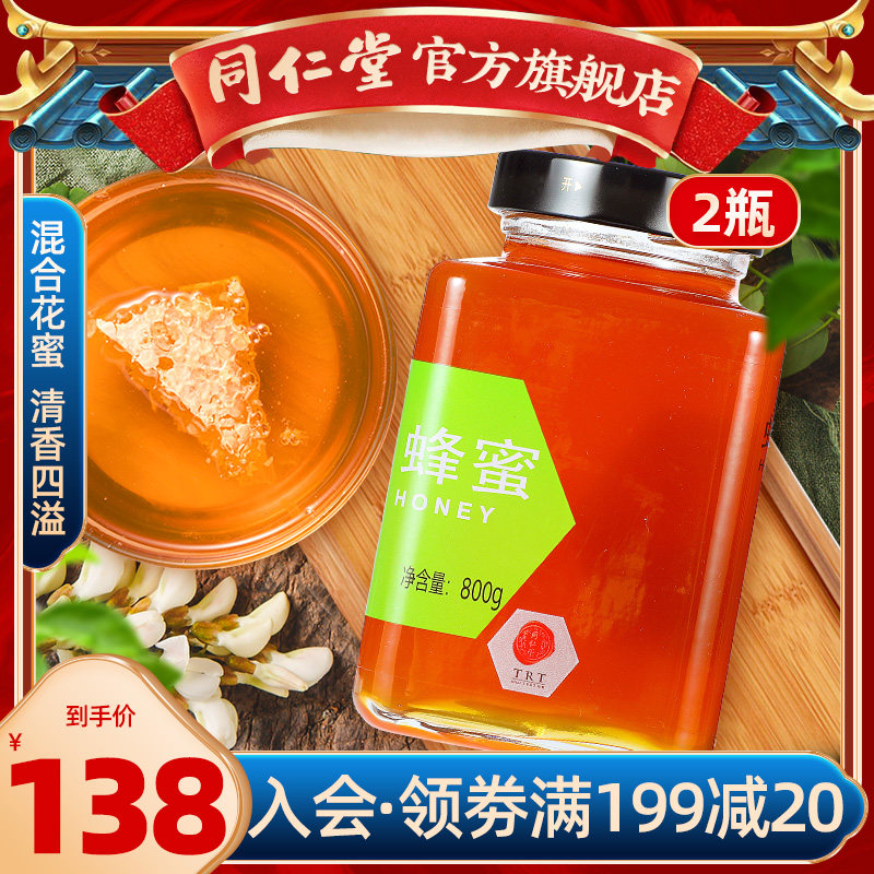Пекинг Тонгрентанг флагманский магазин Honey 800g*2 бутылки из бутылки из стеклянной бутылки Большие бутылки Семейные самооперационные сотни цветочных медов