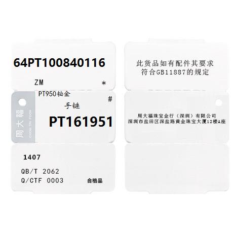 周大福 Ювелирное украшение, платиновый браслет, платина 950 пробы, платина 161951 пробы