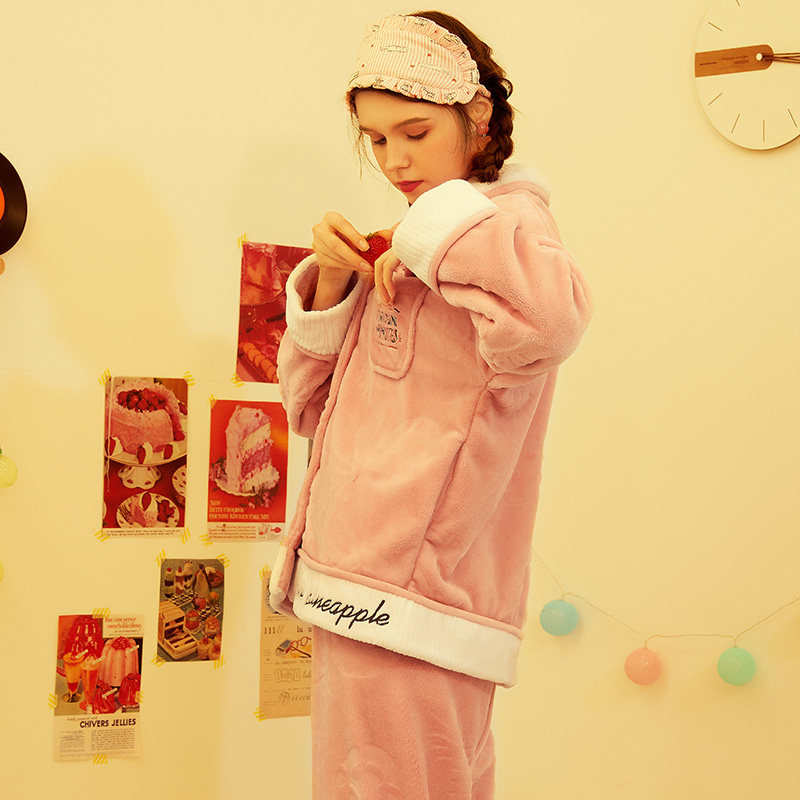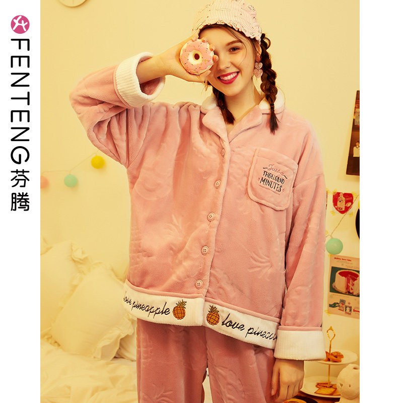 芬腾 Зимняя коралловая бархатная пижама, кардиган, милый удерживающий тепло лонгслив, фланелевый комплект, свободный крой