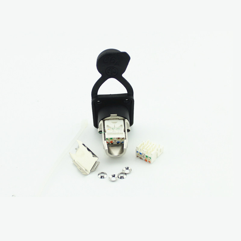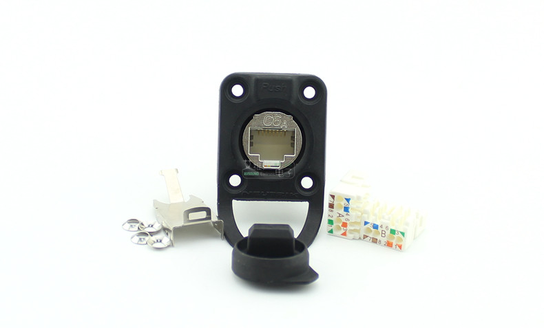 D -тип разъем панели Cat6a, экранирование, прохождение, с резиновым герметичным кольцом,Уровень защиты IP65 после подключения, Никелевый корпус.