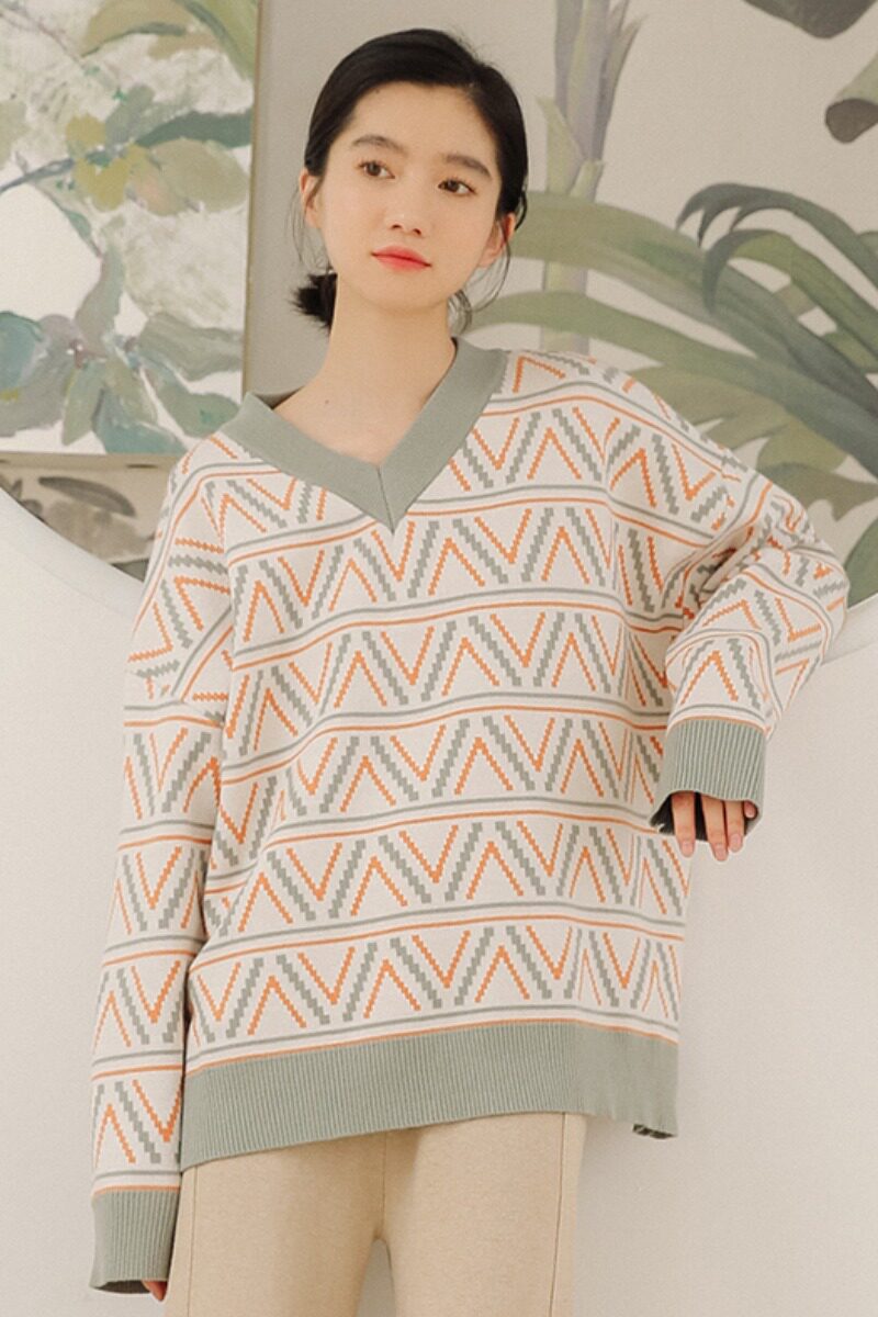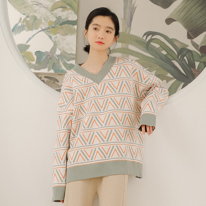 Ретро цветной трикотажный свитер для школьников и студентов, 2020, в корейском стиле, оверсайз, V-образный вырез