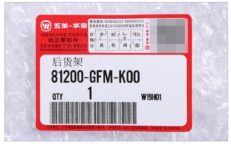 Вуян Хонда Цзяю 110 Задние полки задние арбитражные задних подлокотников Три королевства четвертого (оригинальный подлинный)