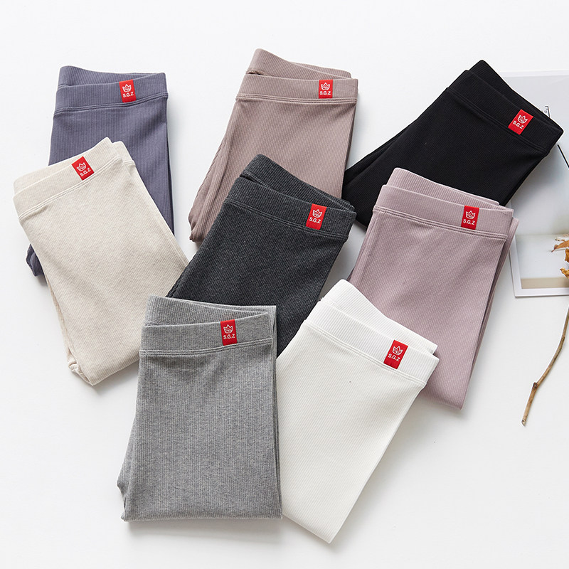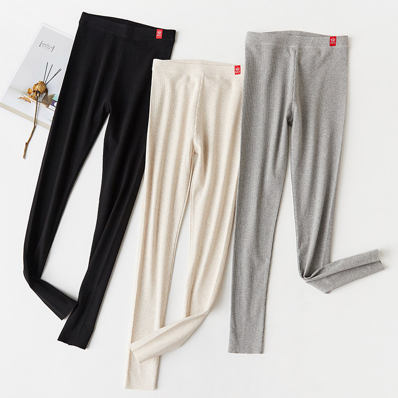 Леггинсы, осенние штаны, хлопковое черное термобелье, высокая талия, в обтяжку