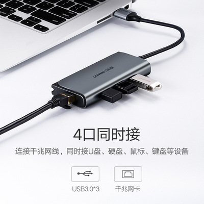 Ugreen Green Union 50769 USB 3.0 Turning Gigabit Network Card+3 Port USB3.0 Многофункциональный преобразователь CM208
