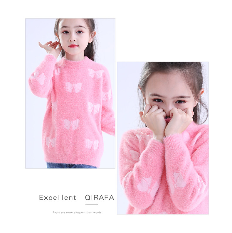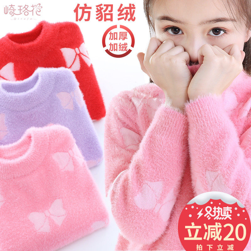 Детский трикотажный свитер, демисезонный базовый приятный телу пуховик, искусственный мех, в западном стиле