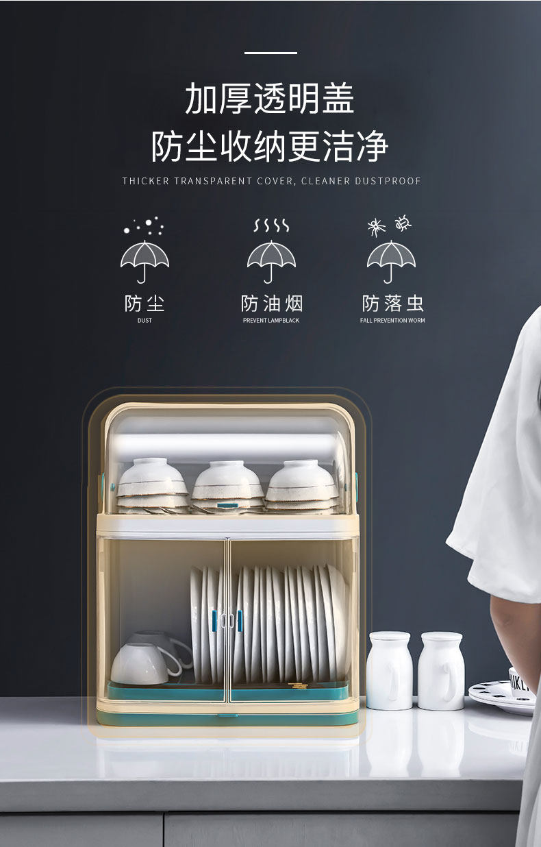 Коробка для хранения кухонной посуды с крышкой и поставкой посуды, чтобы установить блюдо, отдельные пластиковые полки.