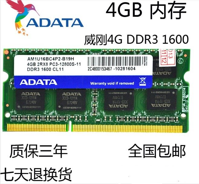 Бесплатная доставка оригинальная Adata DDR3 4G 1600 память ноутбука PC3-12800S 4G 1600