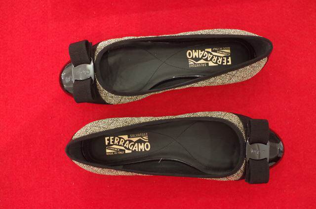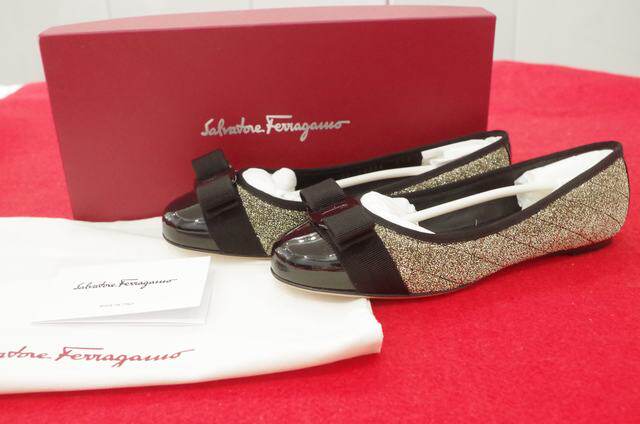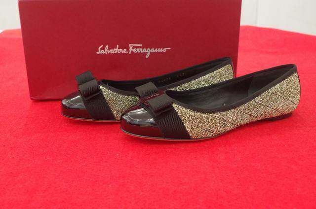 Spot Ferragamo/Ferragam Mss Ms. Black Cowladit Ballet Bow Flat Thant