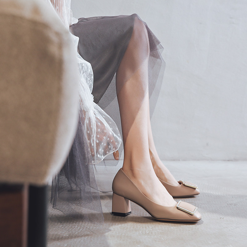 一代佳人 Осенние туфли на высоком каблуке, универсальная черная униформа медсестры, 2019