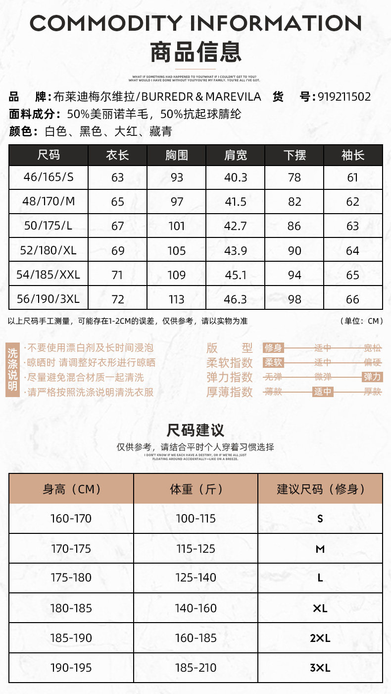 | Размер: | 44/XS/160, 46/S/165, 48/M/170, 50/L/175, 52/XL/180, 54/XXL/185, 56/XXXL/190, 58/XXXXL/195, Пожалуйста, проконсультируйтесь с обслуживанием клиентов, чтобы получить точный размер |