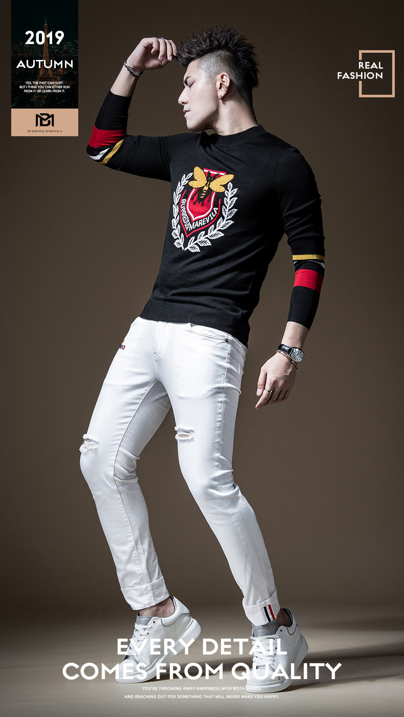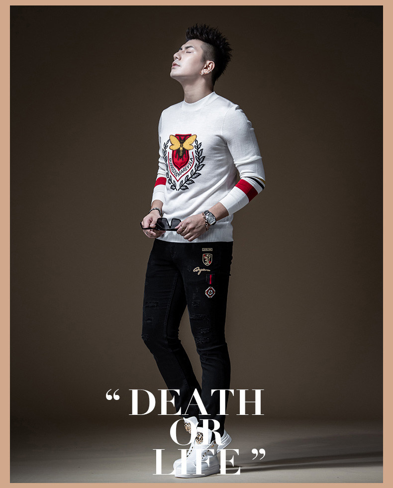 Tide, трикотажный шерстяной демисезонный свитер, брендовая утепленный лонгслив, с вышивкой, высокий воротник