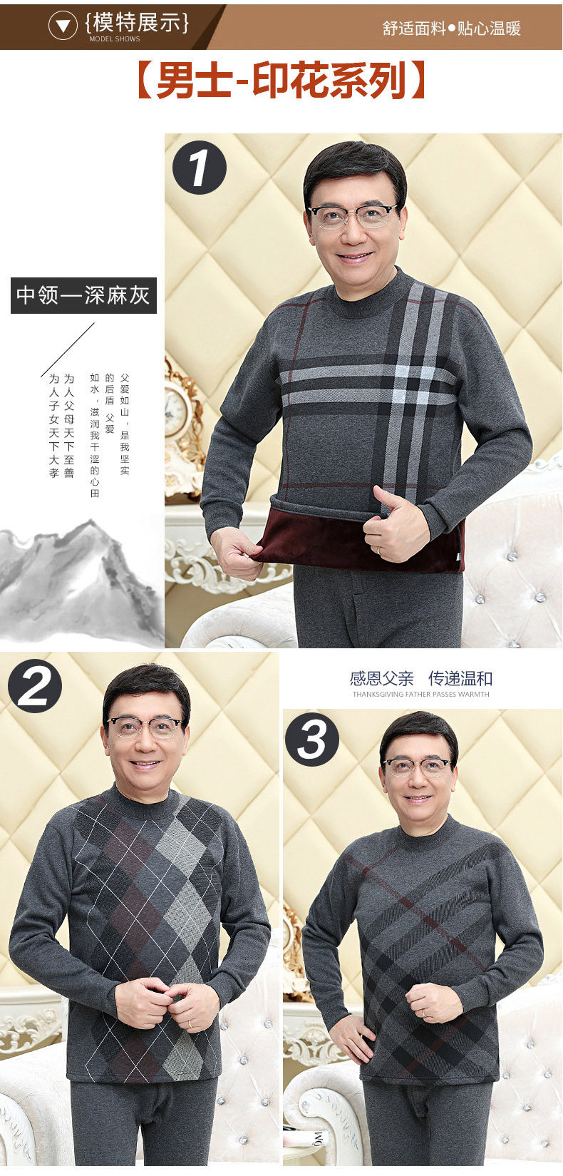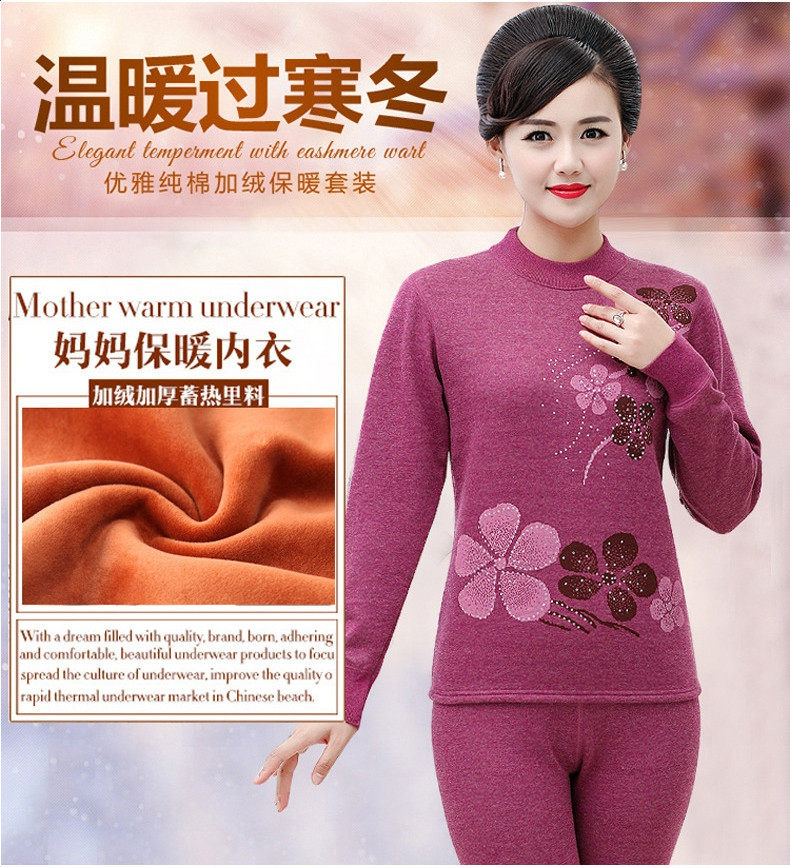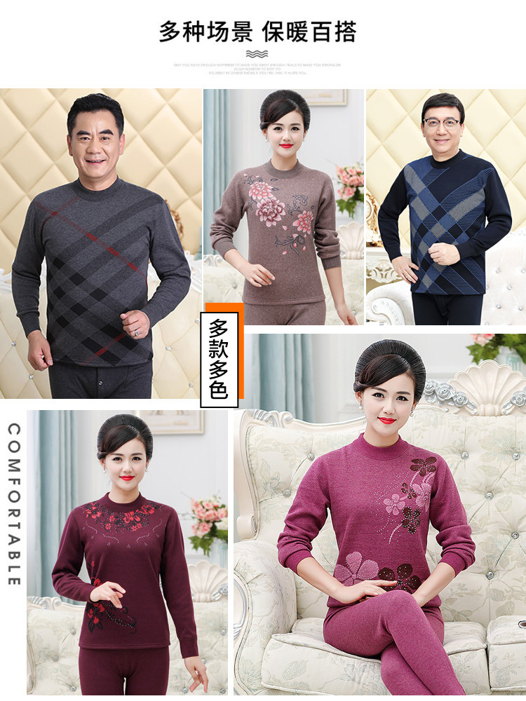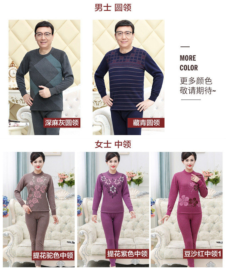 恒源祥 Удерживающее тепло утепленное нижнее белье для пожилых людей подходит для мужчин и женщин, утепленный комплект, для среднего возраста