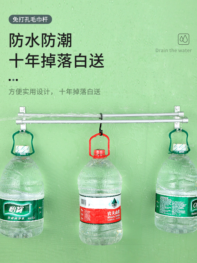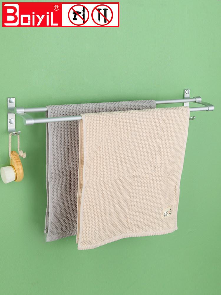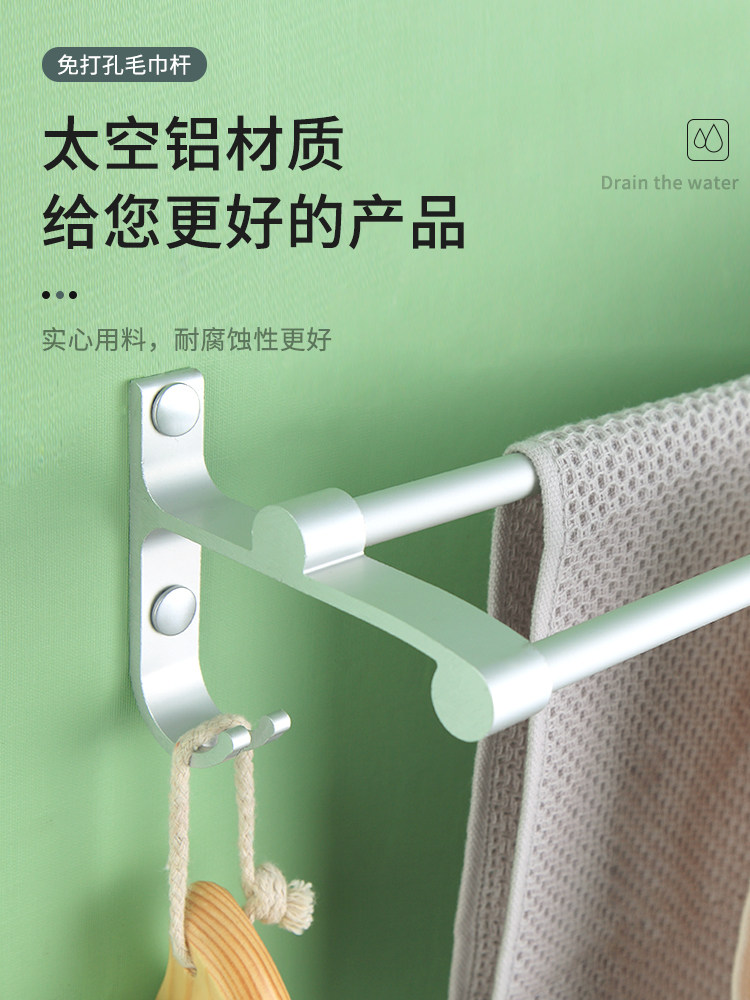 [浴室挂毛巾架免打孔神器宿舍挂墙上晾免打孔面布置物架厕所双杆子]