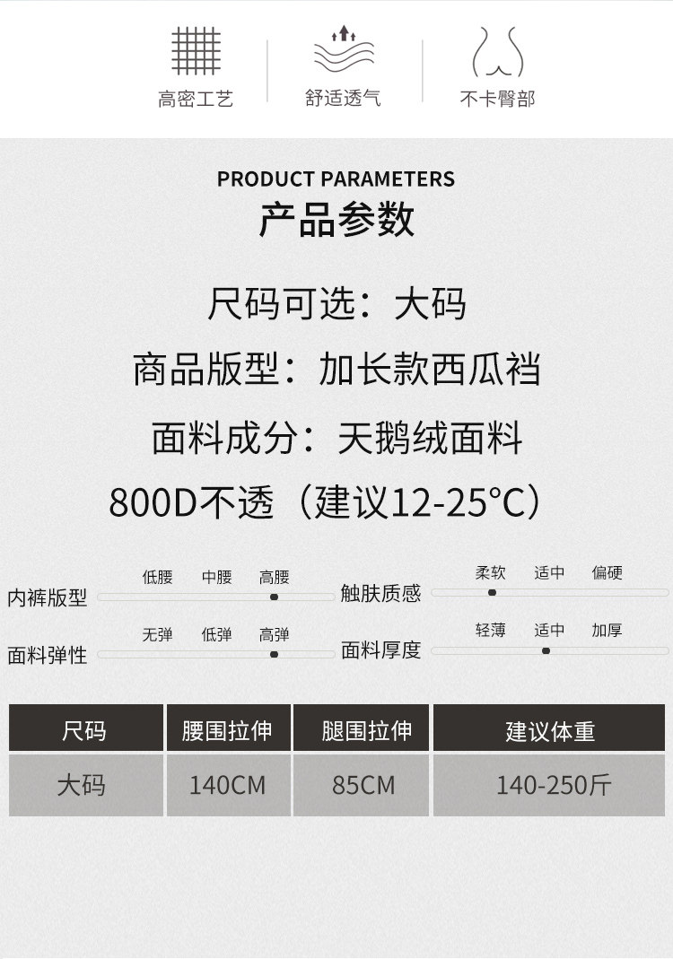 Общая длина составляет 105 см, окружность талии можно растянуть до 140 см, а окружность ноги — до 90 см.Рекомендуется носить его при температуре 12-25 градусов.