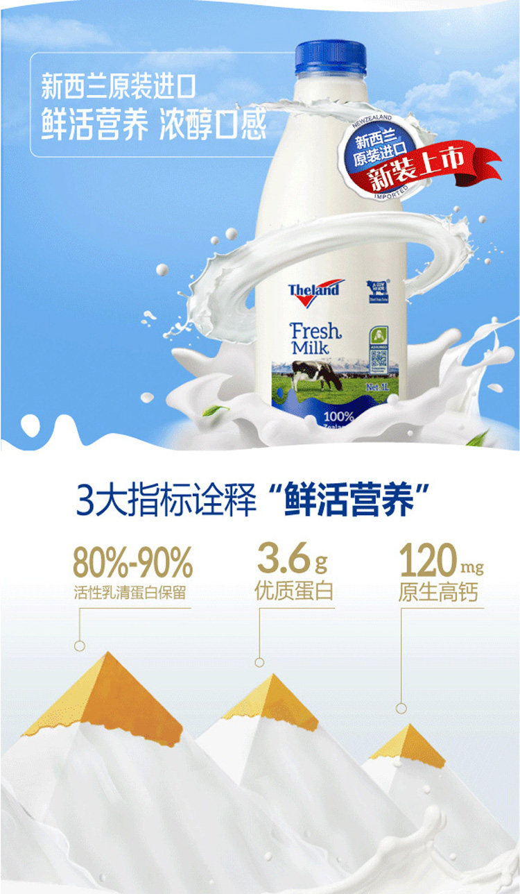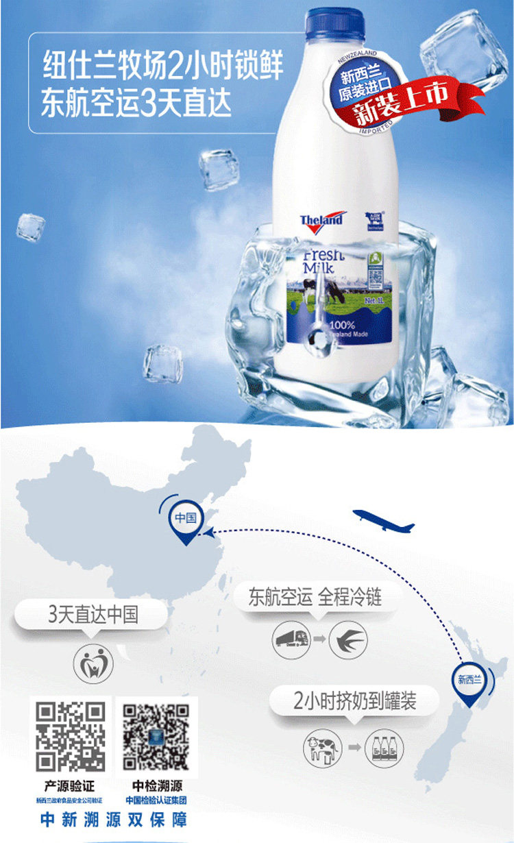 Свежее молоко Theland Farm Fresh Milk 1л, импортированное из Новой Зеландии