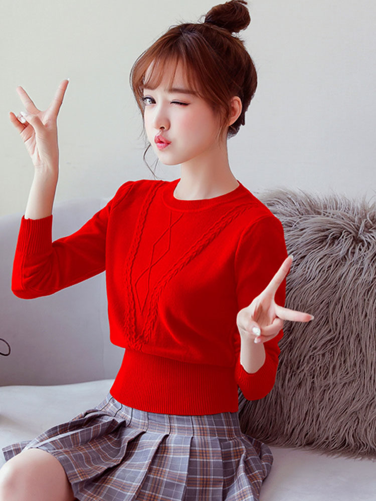 Трикотажный свитер, весенний корсет, шерстяной лонгслив с круглым воротником, 2021 года, облегающий крой