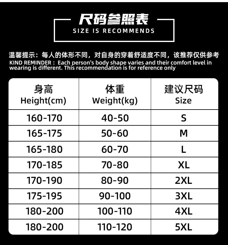 | Размер: | S рекомендовал 45-50 кг, M рекомендую 50-60 кг, L Рекомендуется 60-70 кг, XL рекомендовал 70-80 кг, 2xl рекомендуется 80-90 кг, 3XL рекомендовал 90-100 кг, 4xl рекомендуется 100-110 кг, 5xl рекомендуется 110-120 кг |