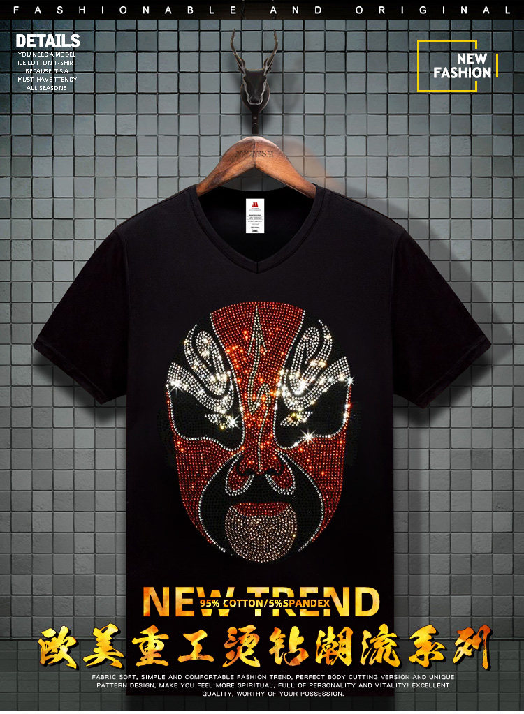 Маска уникальная футболка с бриллиантовым камнем мужской пекин