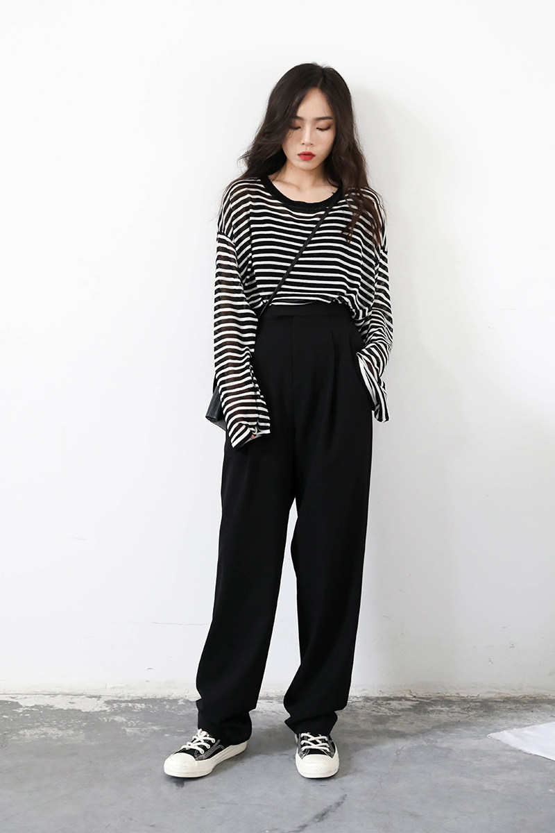 Дизайн высокой талии тянет линию талии, а талия тонкая, а ноги длинные.