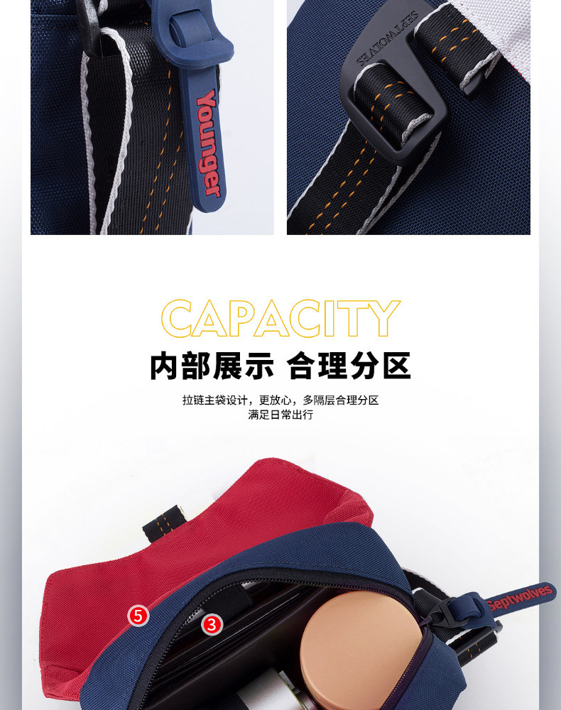 Septwolves, Tide, сумка на одно плечо, мужская трендовая сумка через плечо для отдыха в стиле хип-хоп, подходит для студента