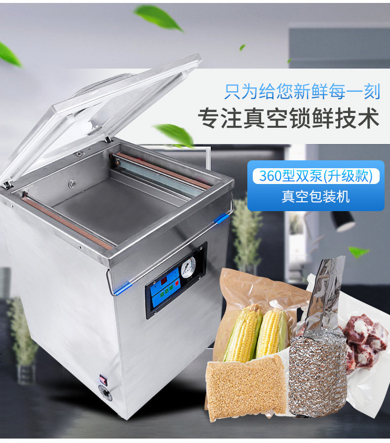 360 Полная автоматическая вакуумная упаковка продуктов питания Коммерческая вакуумная машина для домашнего приготовления пищевой вакуумной упаковки вакуум и влажный подержанный пластиковый насос.