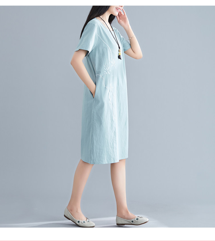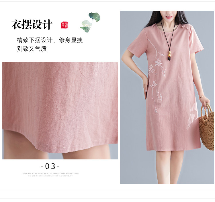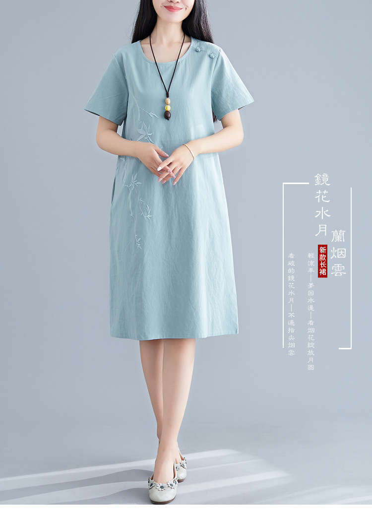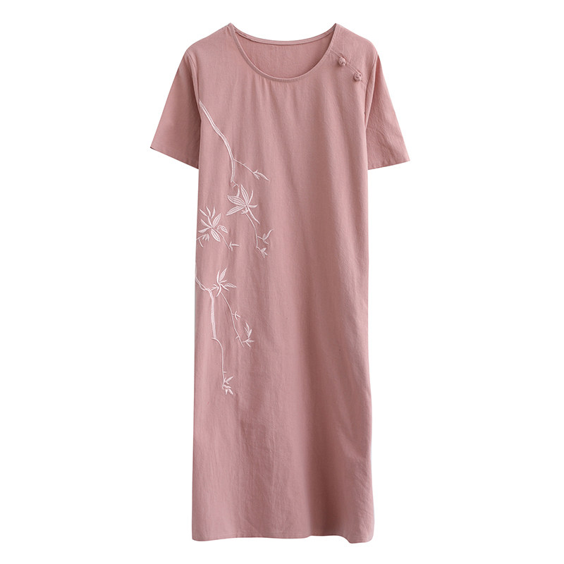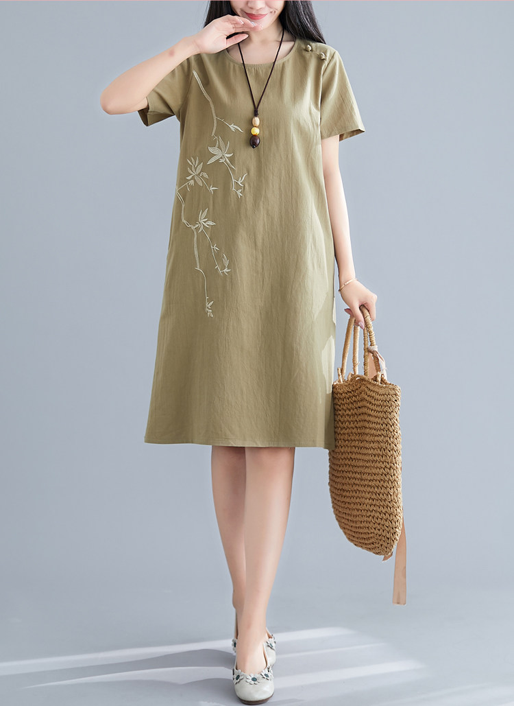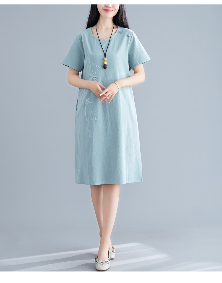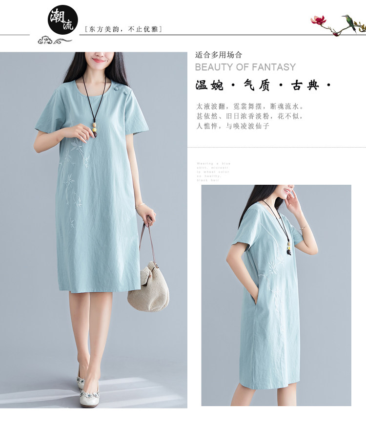 Летнее платье с коротким рукавом, летняя одежда, длинная юбка, с вышивкой, из хлопка и льна, оверсайз, свободный крой, по фигуре, подходит для подростков, средней длины, длина макси