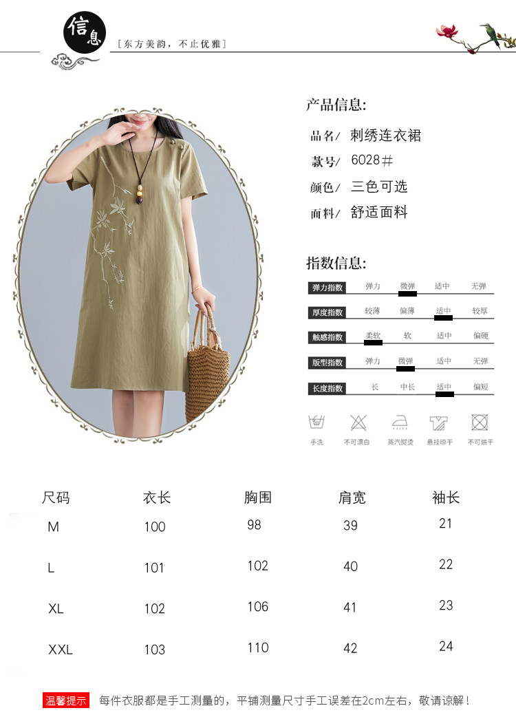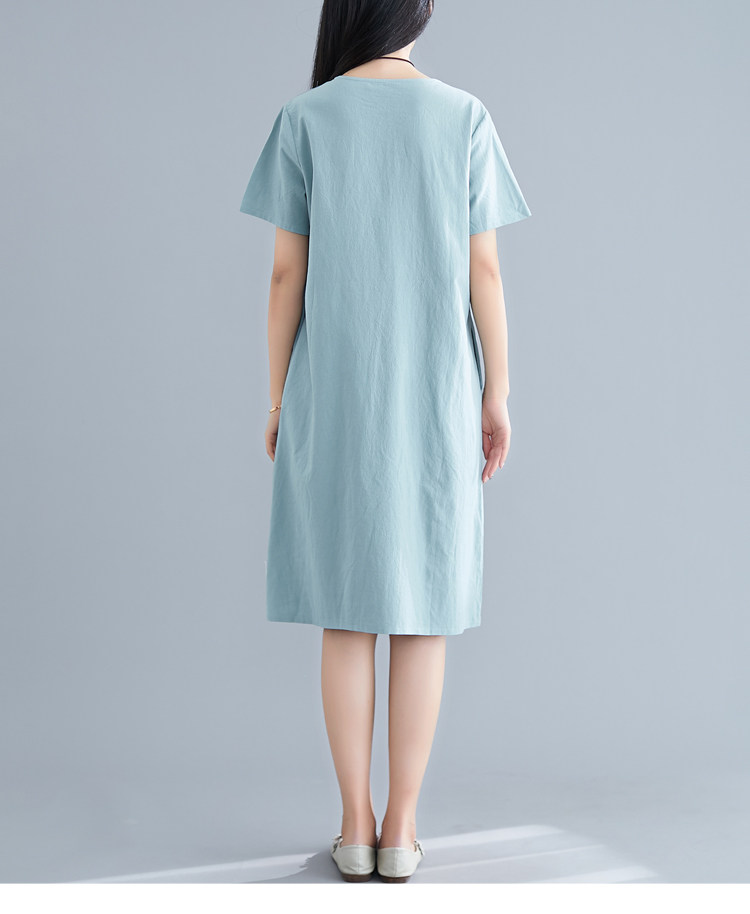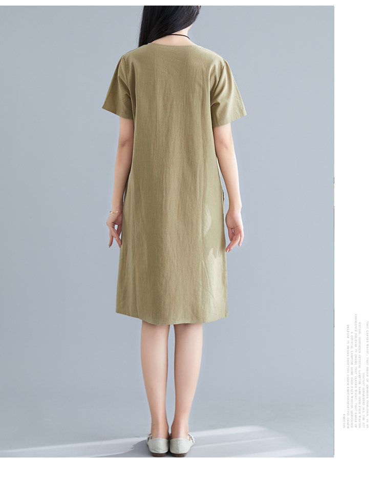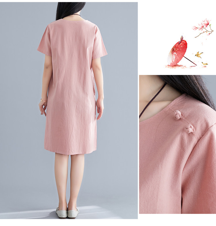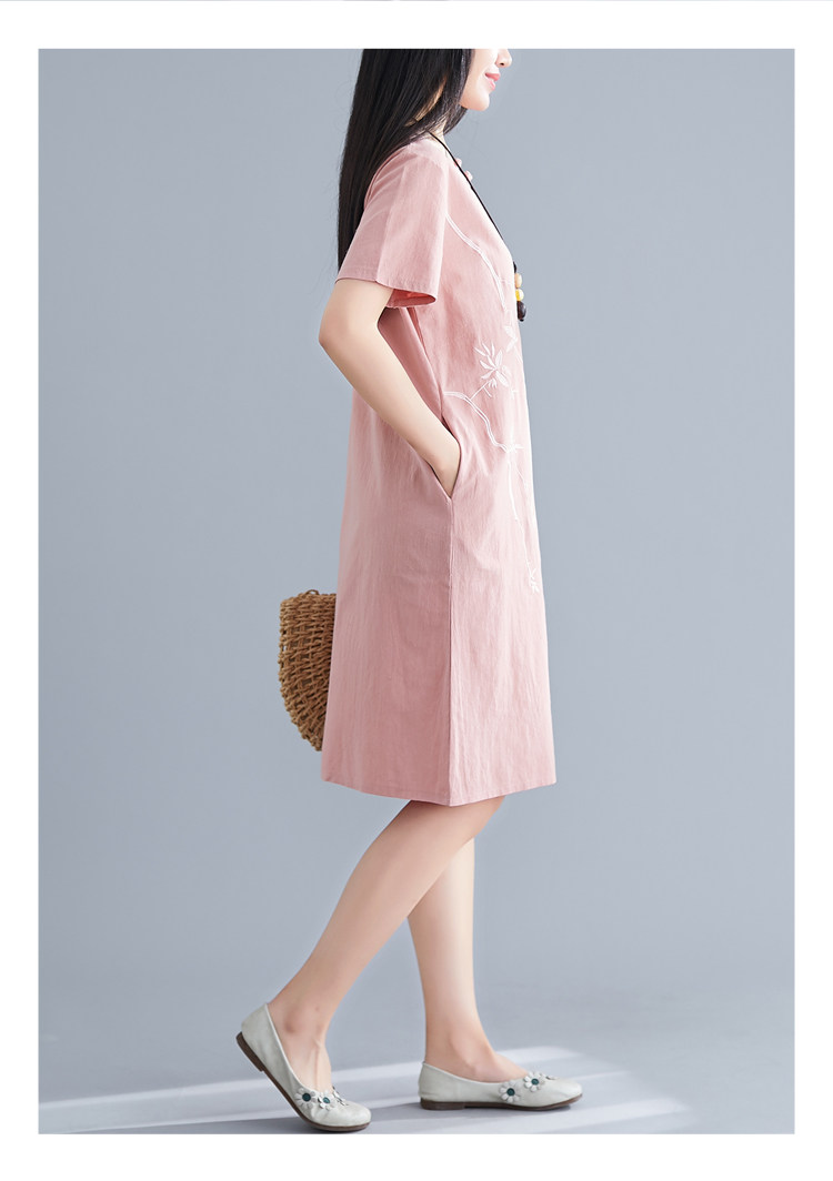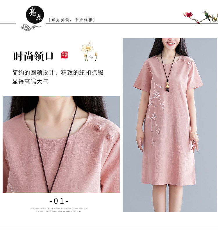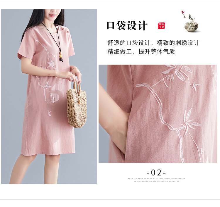 Летнее платье с коротким рукавом, летняя одежда, длинная юбка, с вышивкой, из хлопка и льна, оверсайз, свободный крой, по фигуре, подходит для подростков, средней длины, длина макси