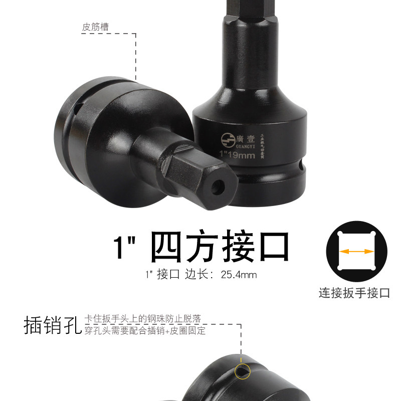 1-дюймовый пневматический шестиугольный вращающийся инструмент рукав для головного ветра Большой ветровой пушечный рукав 17-19-22-27 мм.