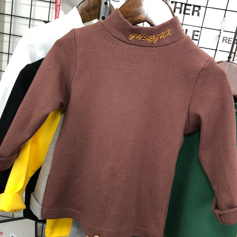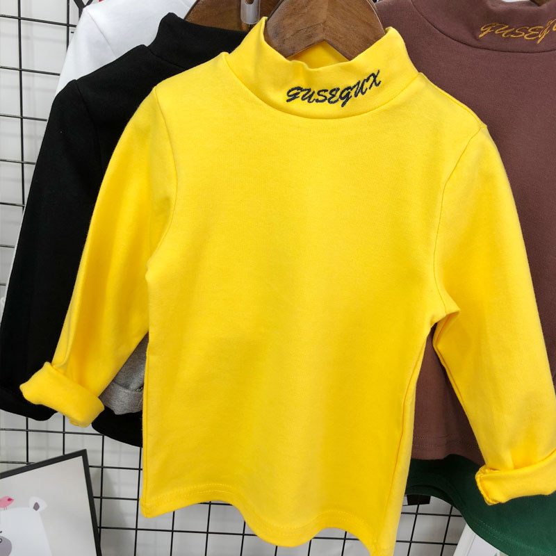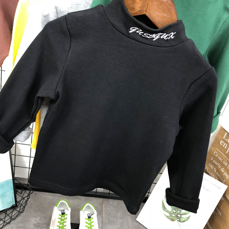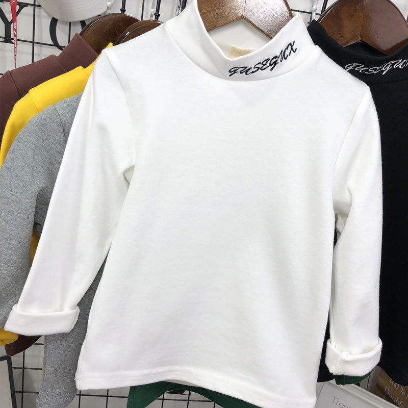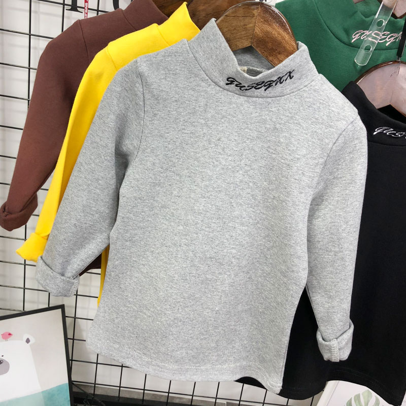 Хлопковая демисезонная детская утепленный лонгслив подходит для мужчин и женщин, высокий воротник, с рукавом, в корейском стиле