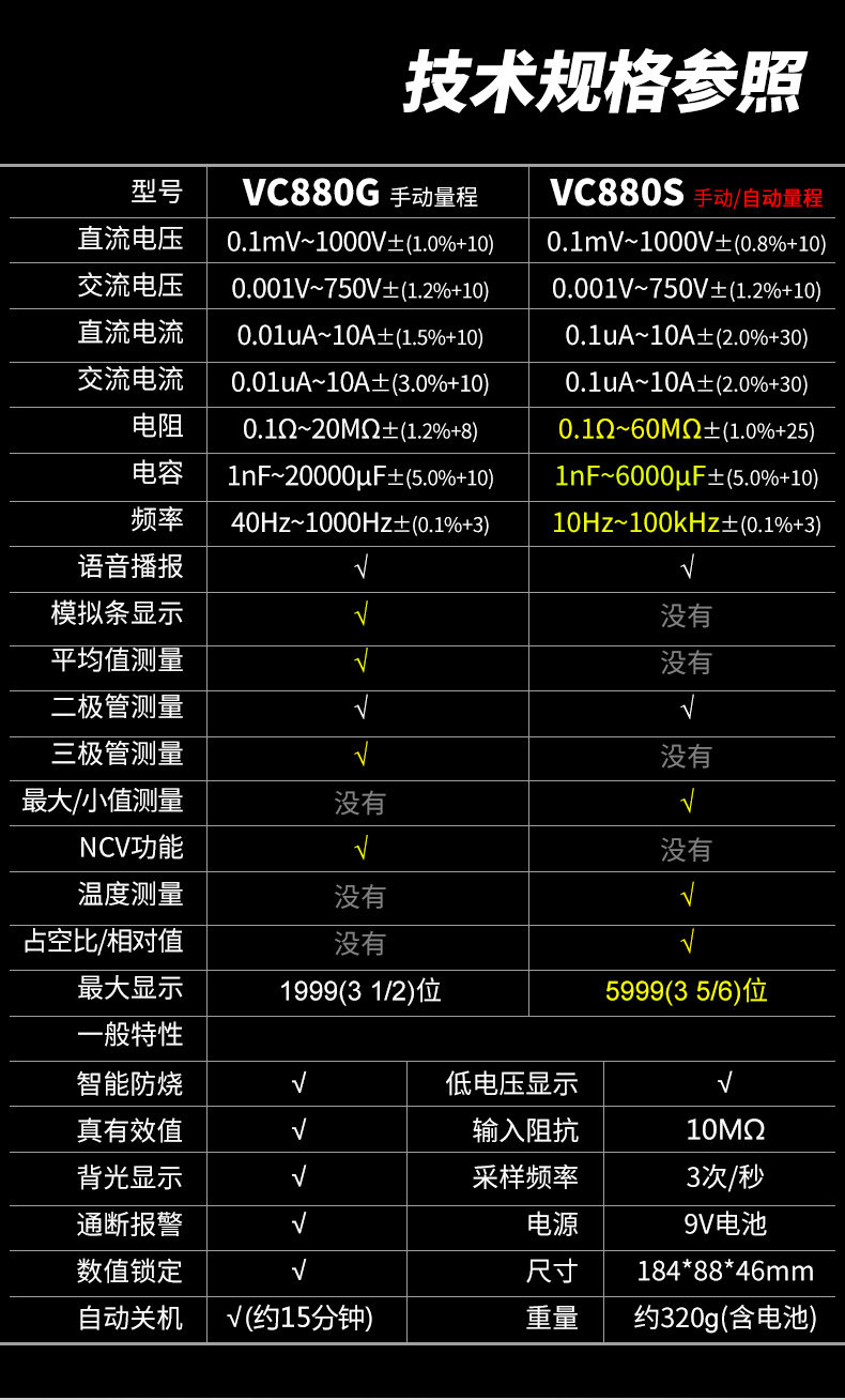 Shengli Multiemeter Ten -Year Shop восемь цветов победы BMW VC880G/VC880S Голос