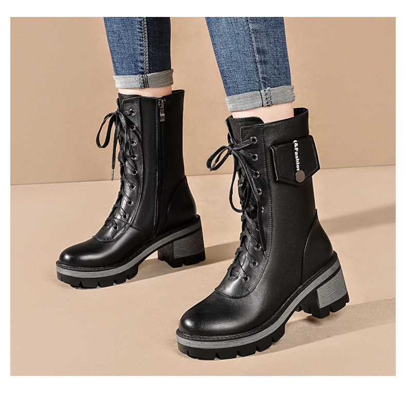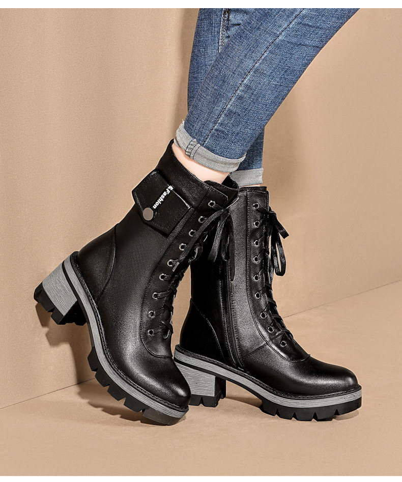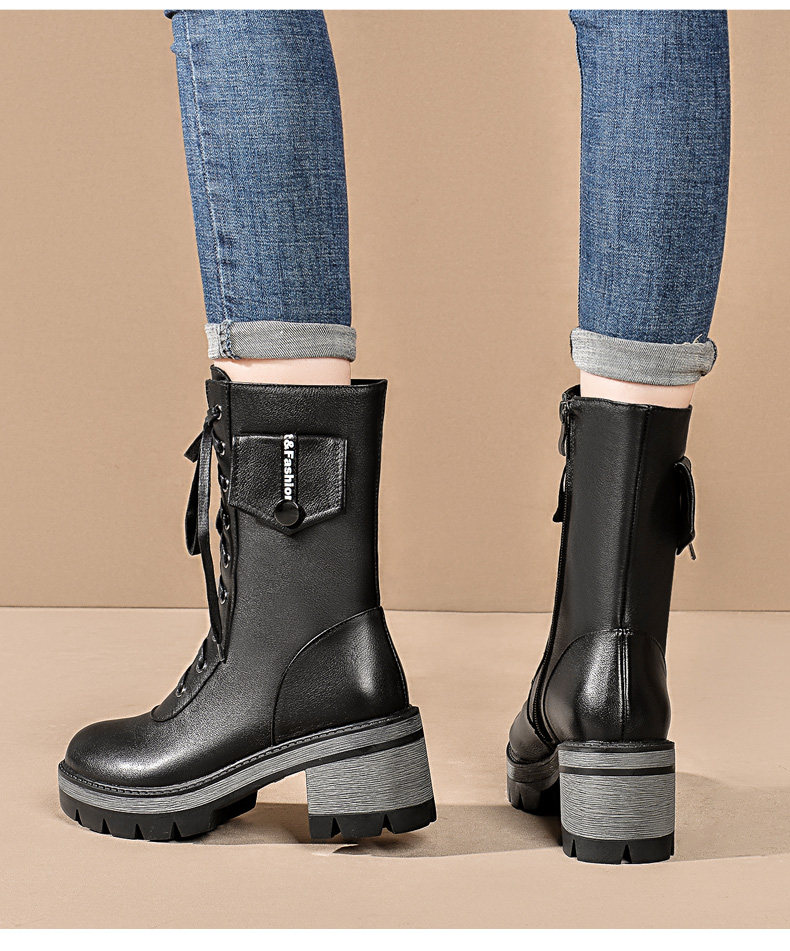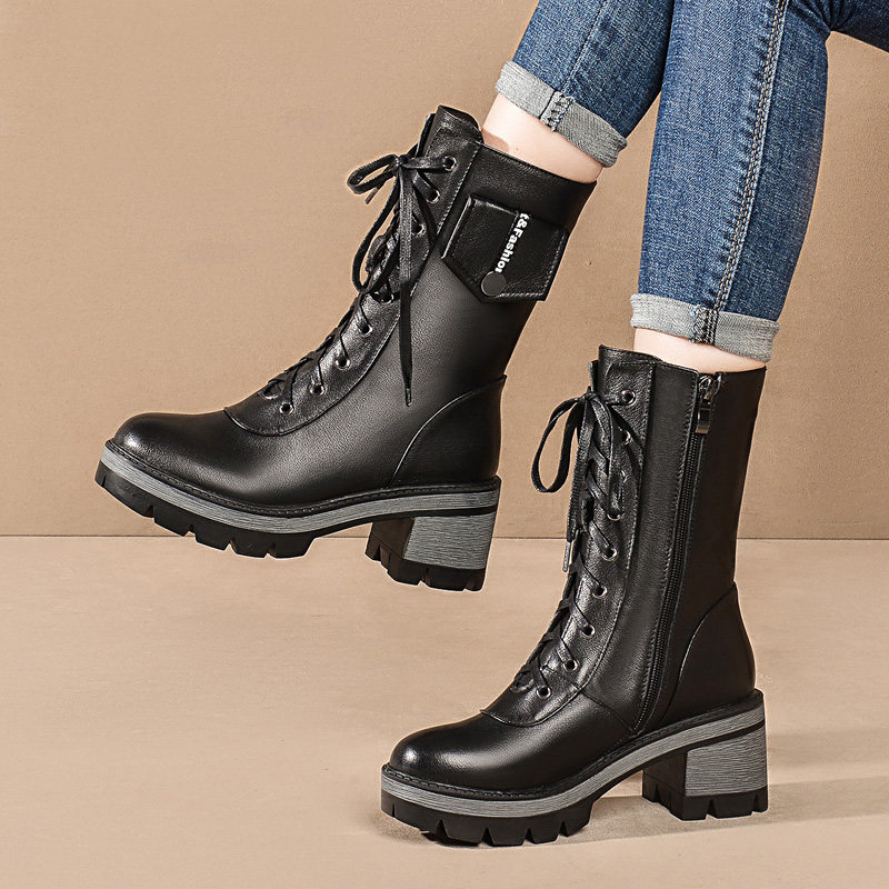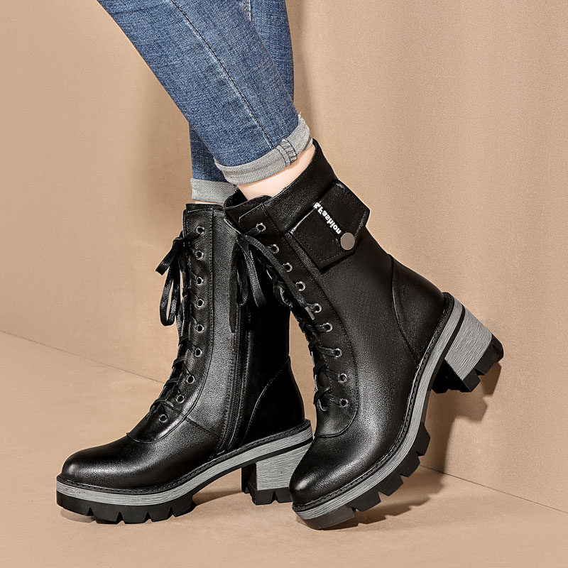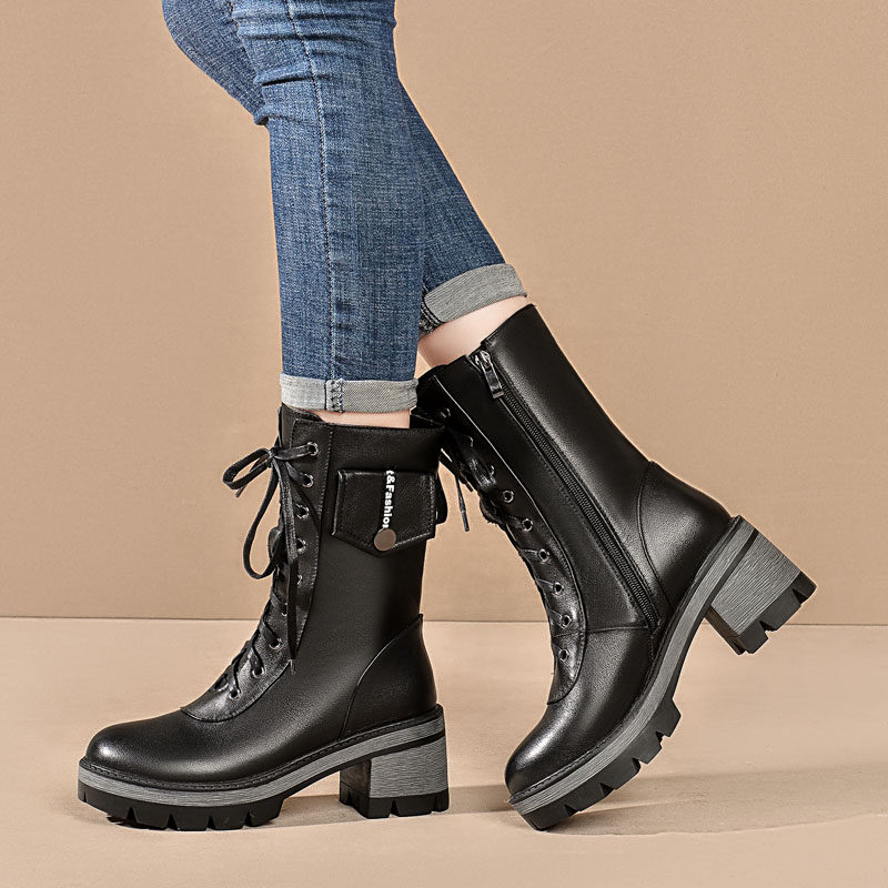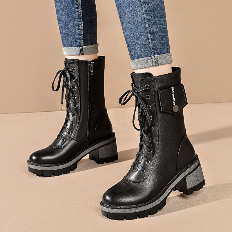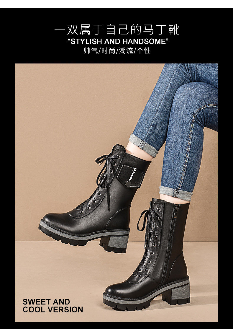 Martens, демисезонные высокие черные флисовые сапоги, 2020, из натуральной кожи, средней длины