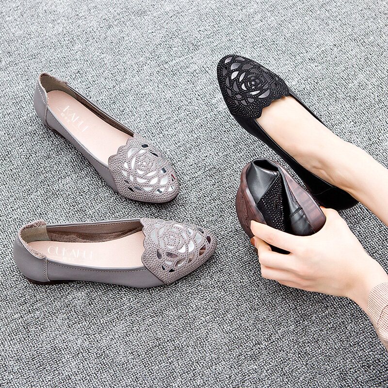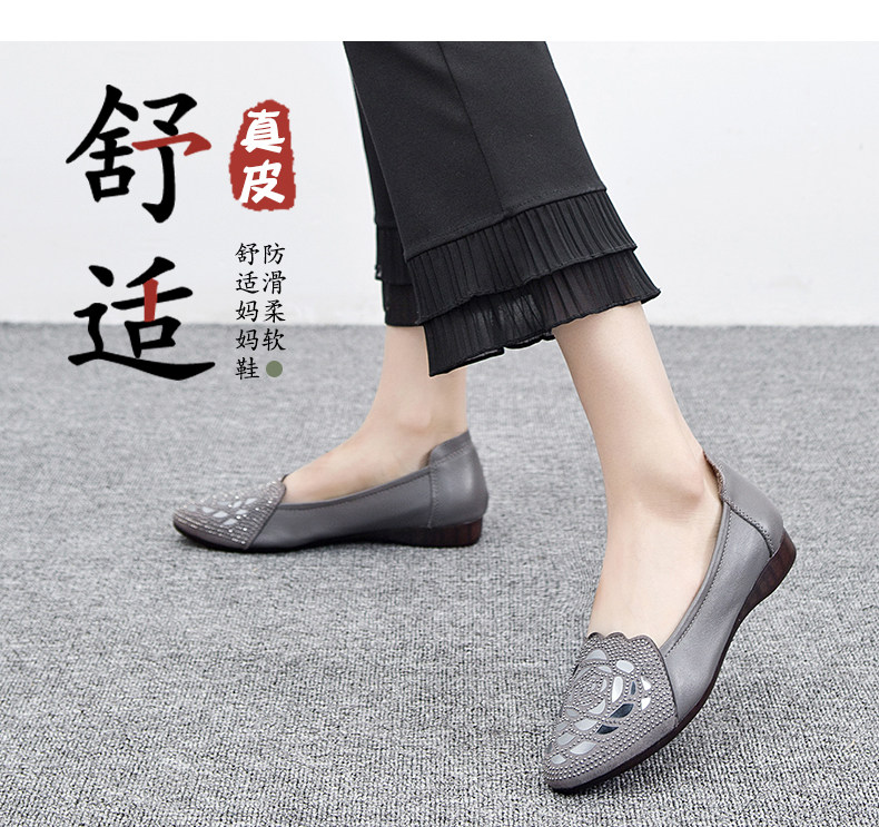 Летняя мама обувь обувь рулево -мягкое дно женщины Удобные плоские средние женские туфли анти -слабые женские одиночные туфли женские одиночные туфли