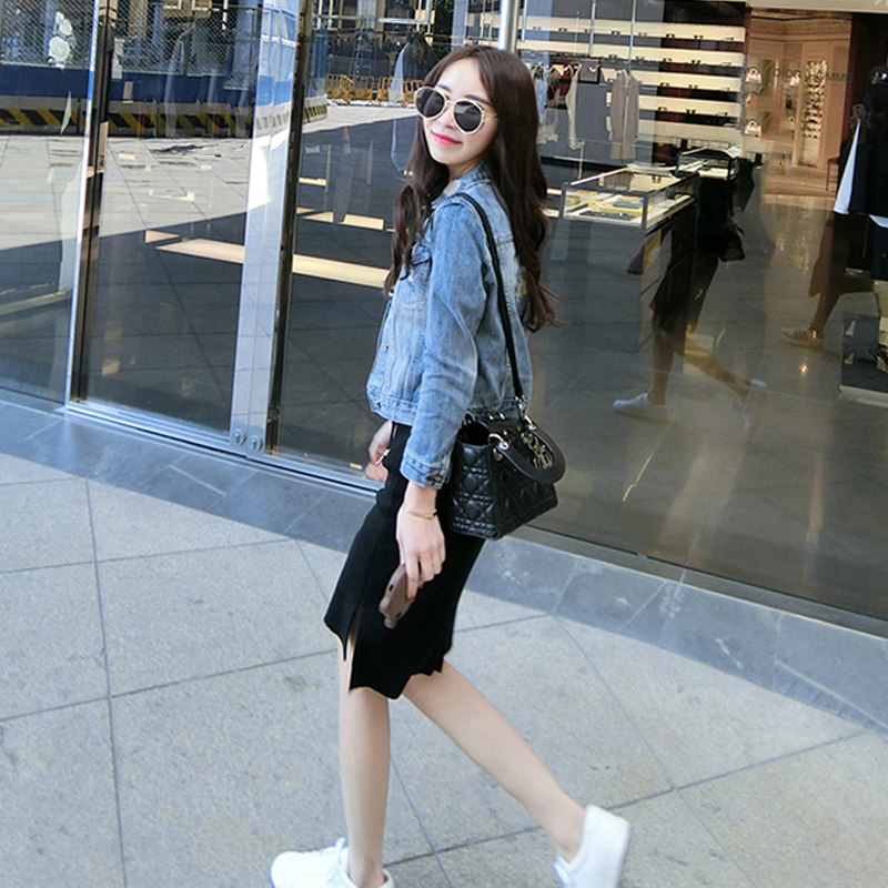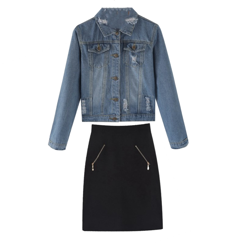 Джинсовая куртка, демисезонный комплект, городской стиль
