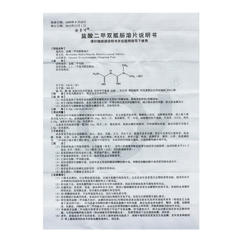 安多可 Фарома соляная кислота Di Metamoreica Enteric растворимые таблетки 0,25 г*48 таблетки*1 бутылка/коробка контрольная терапия диета Диабет сахар в крови с низким содержанием сахара.