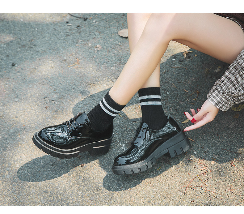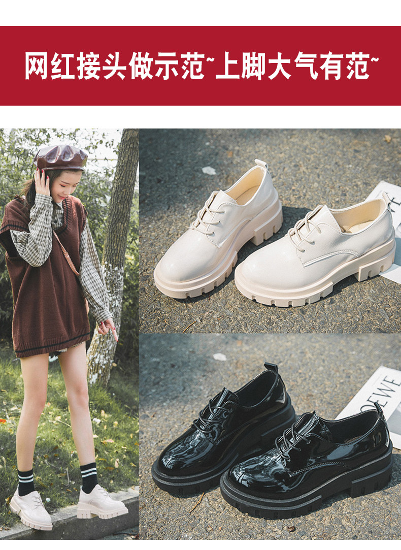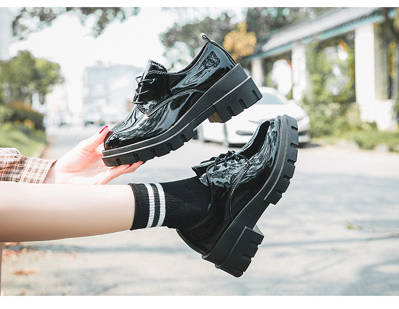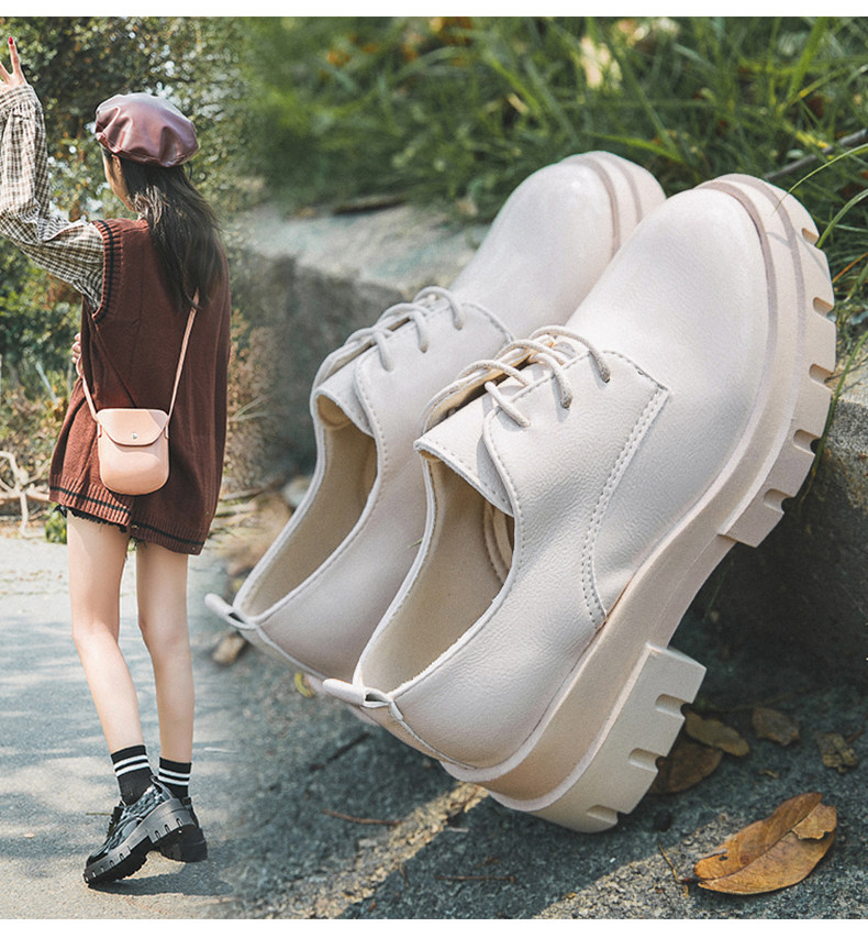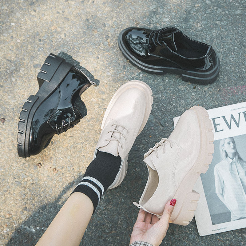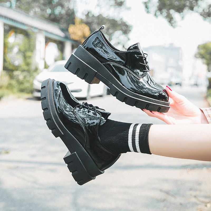 Высокая универсальная обувь для кожаной обуви в английском стиле на платформе, 2019, в корейском стиле