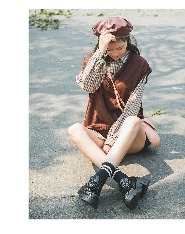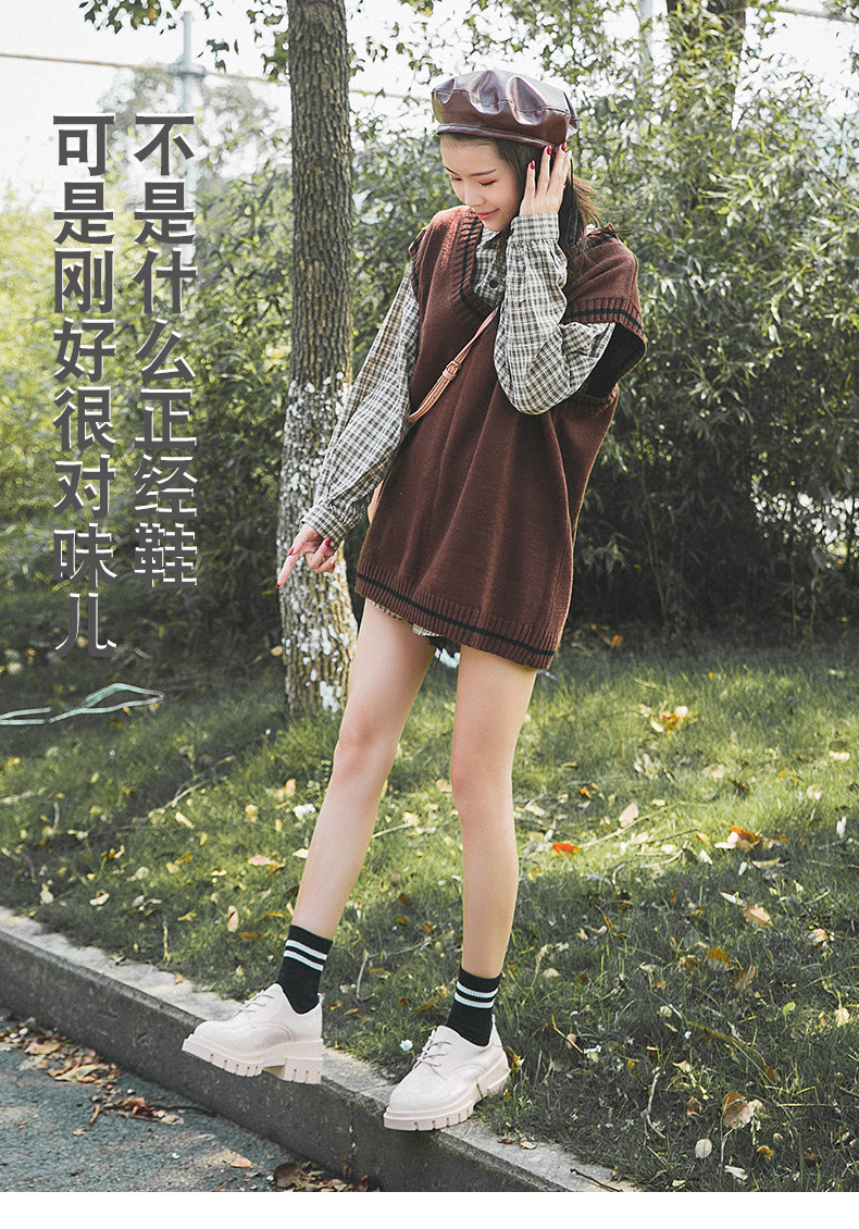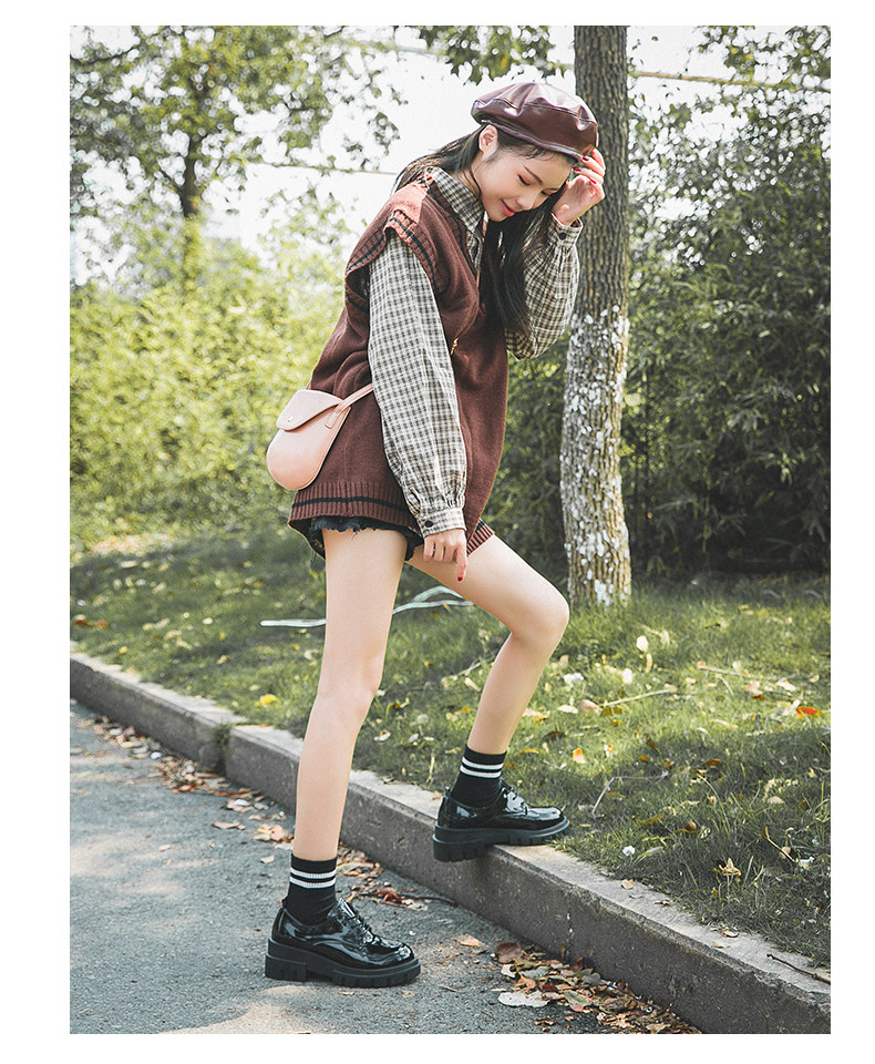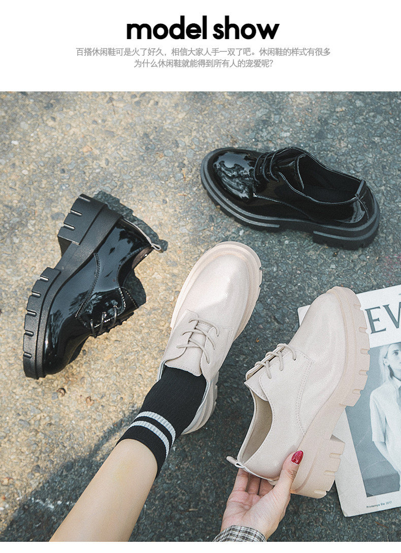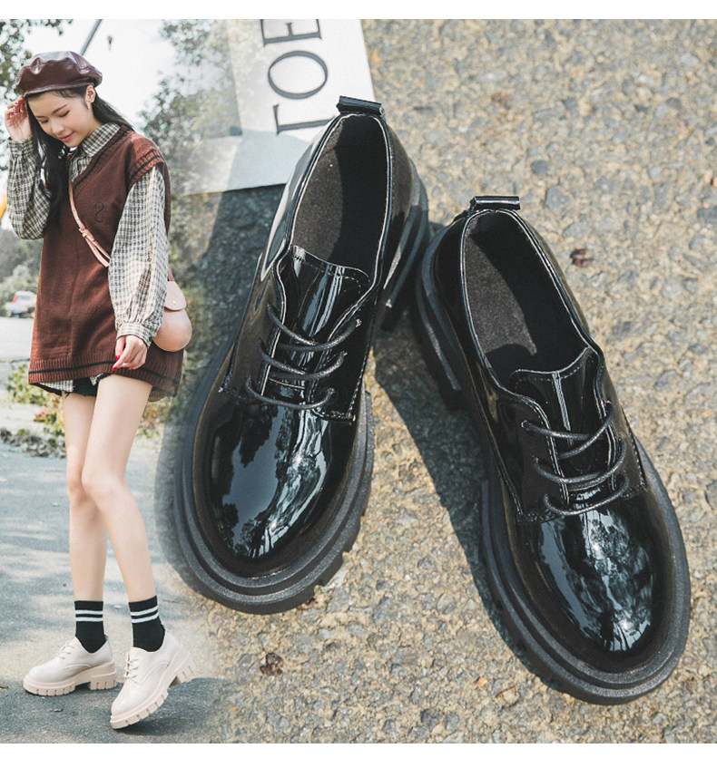 Высокая универсальная обувь для кожаной обуви в английском стиле на платформе, 2019, в корейском стиле