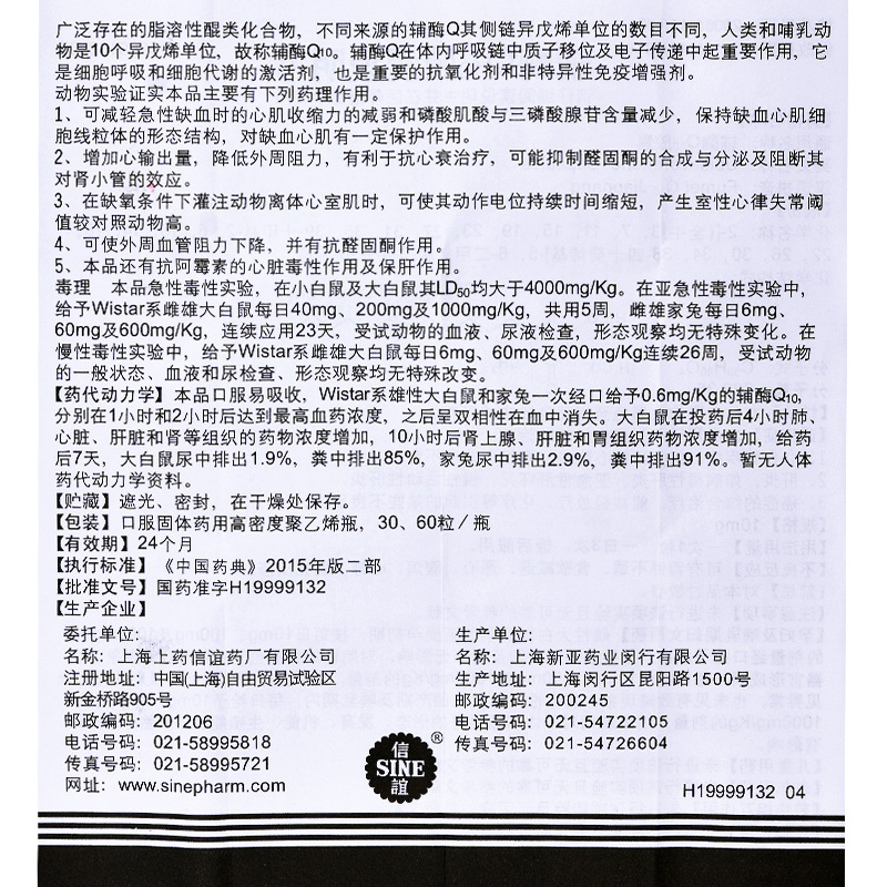 SINE/信谊 Coenzyme Q10 Капсула 10 мг*60 зерен*1 бутылка/коробка