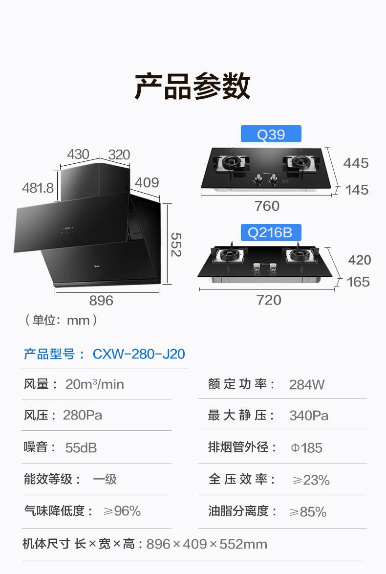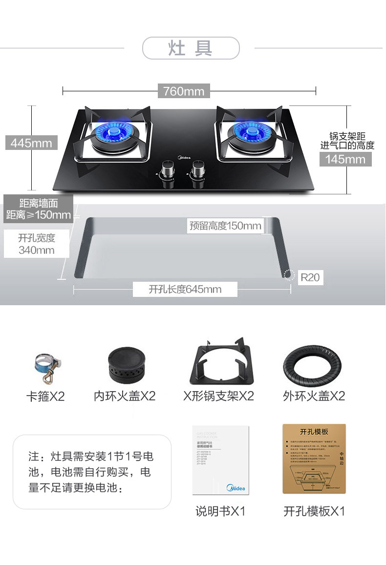 Midea J20 Элемент капюшона, газовая плита для плит.