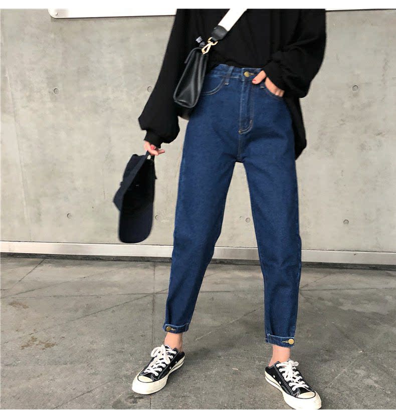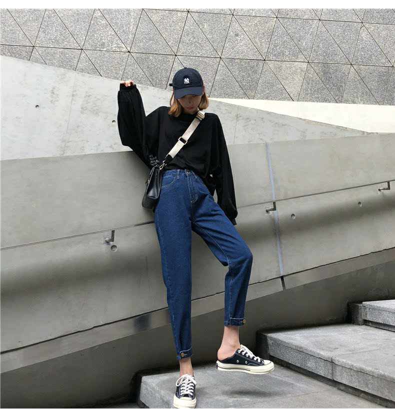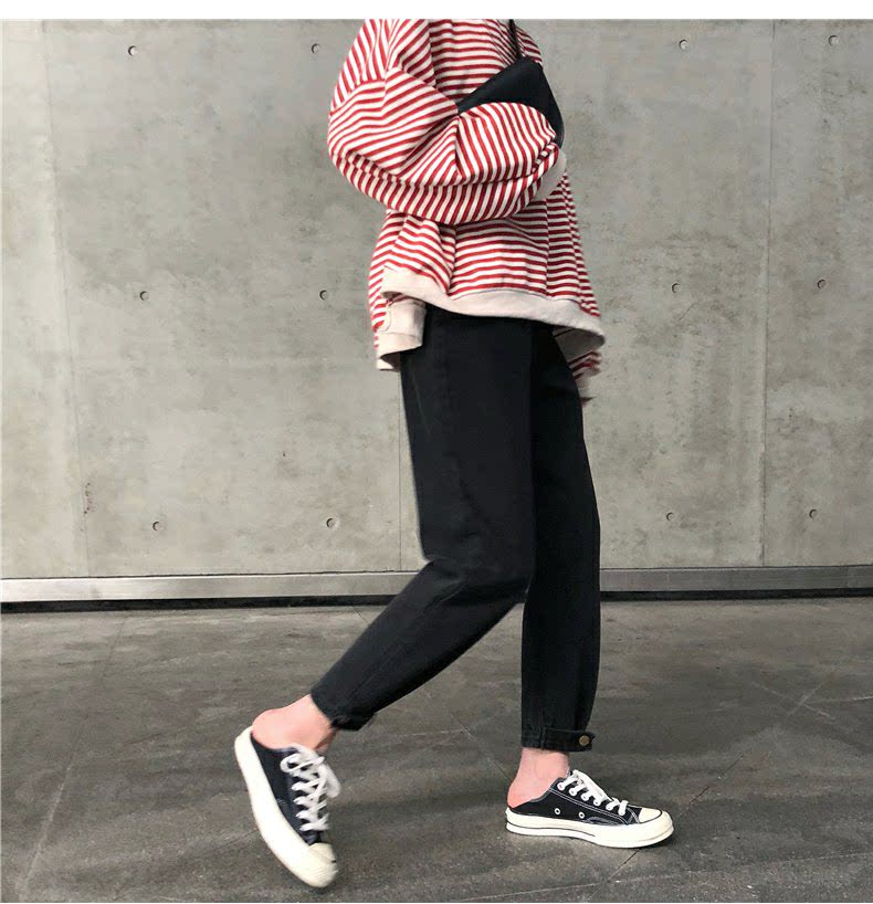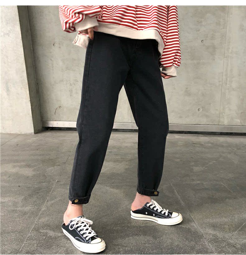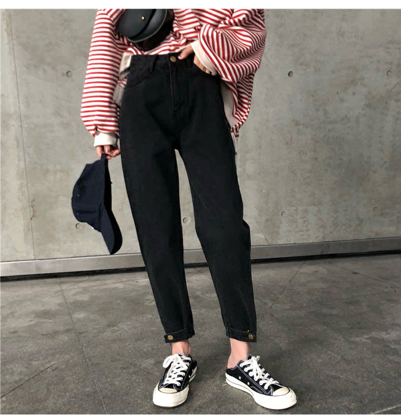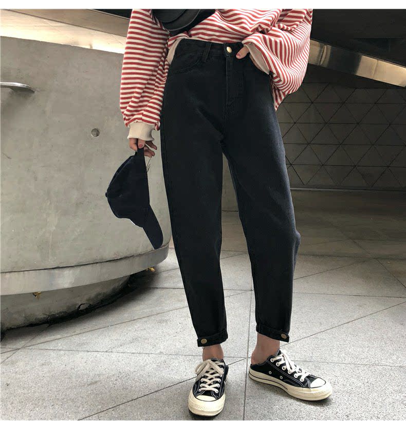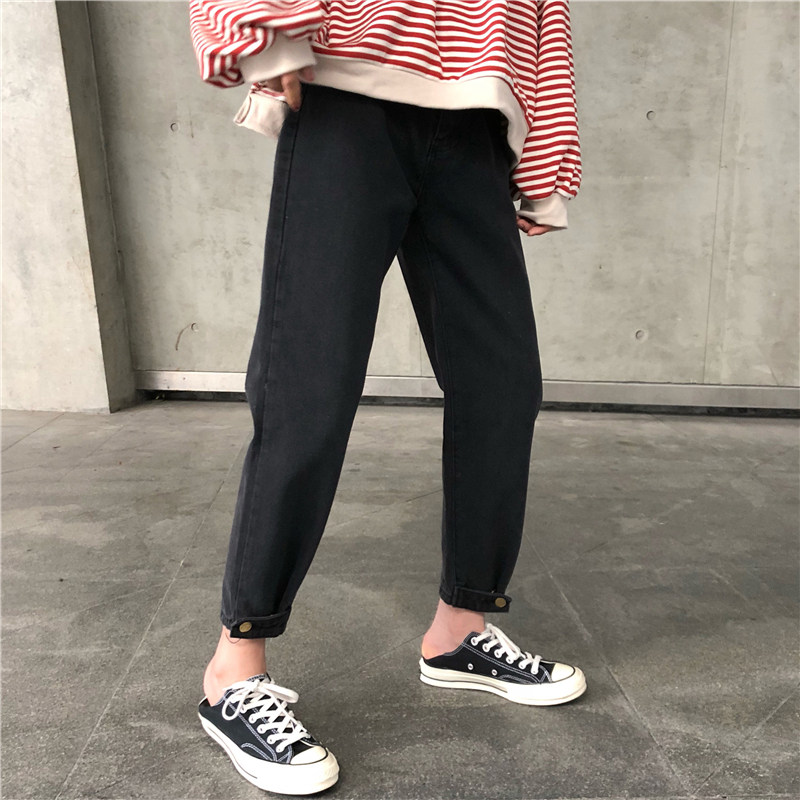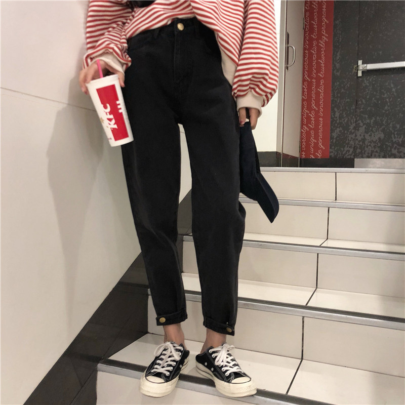 Осенние штаны, черные джинсы, большой размер, высокая талия, свободный прямой крой