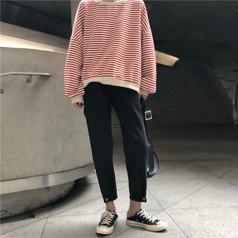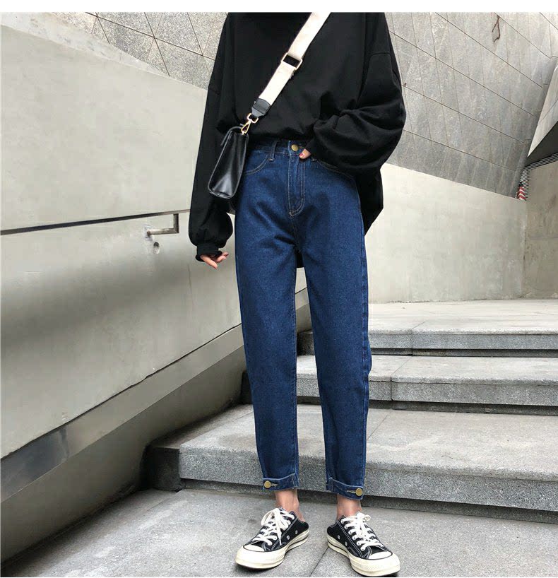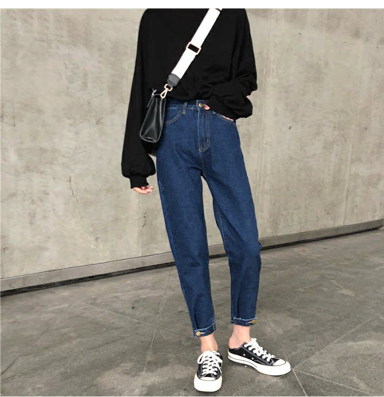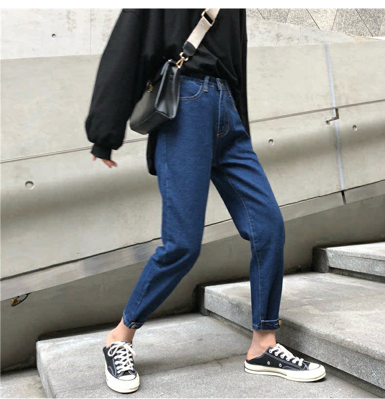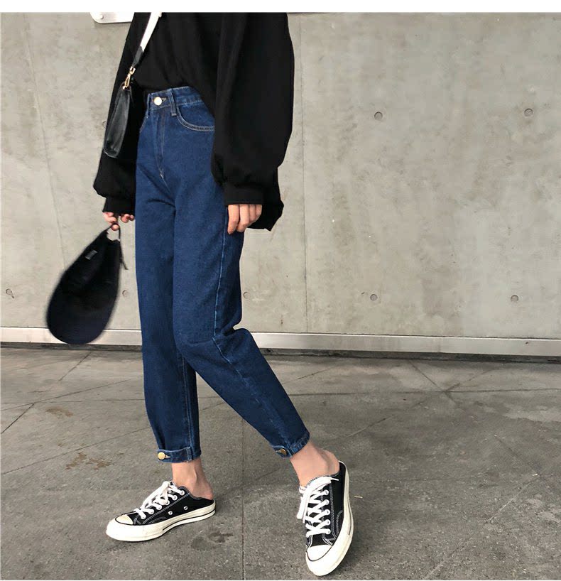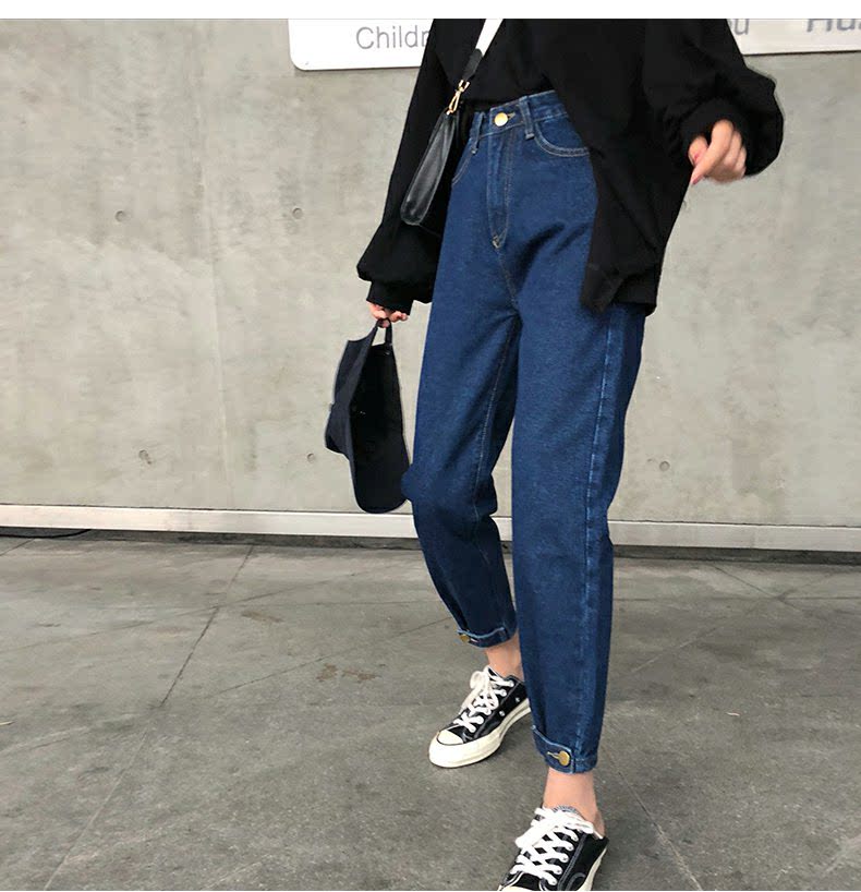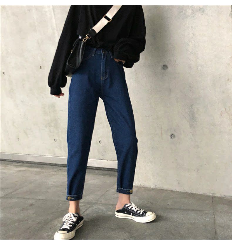 Осенние штаны, черные джинсы, большой размер, высокая талия, свободный прямой крой
