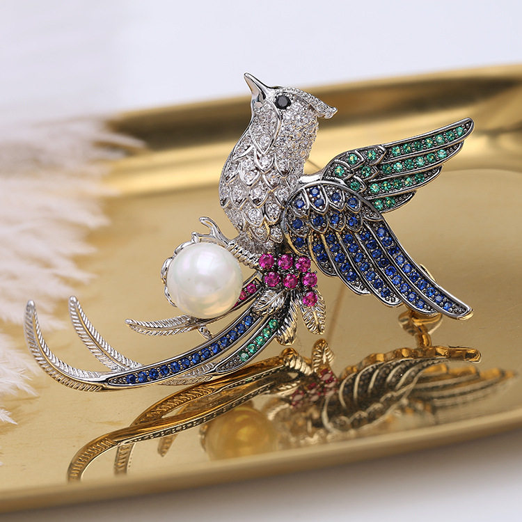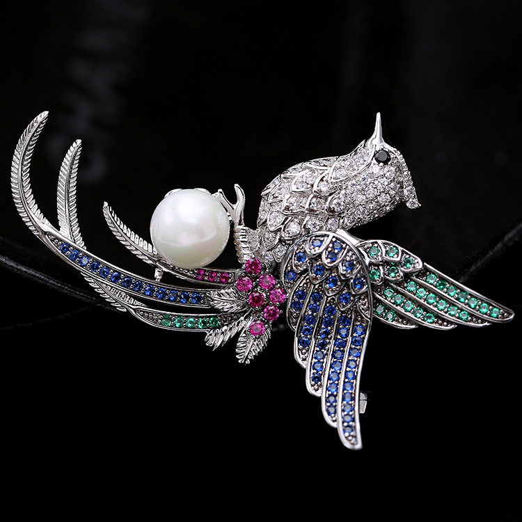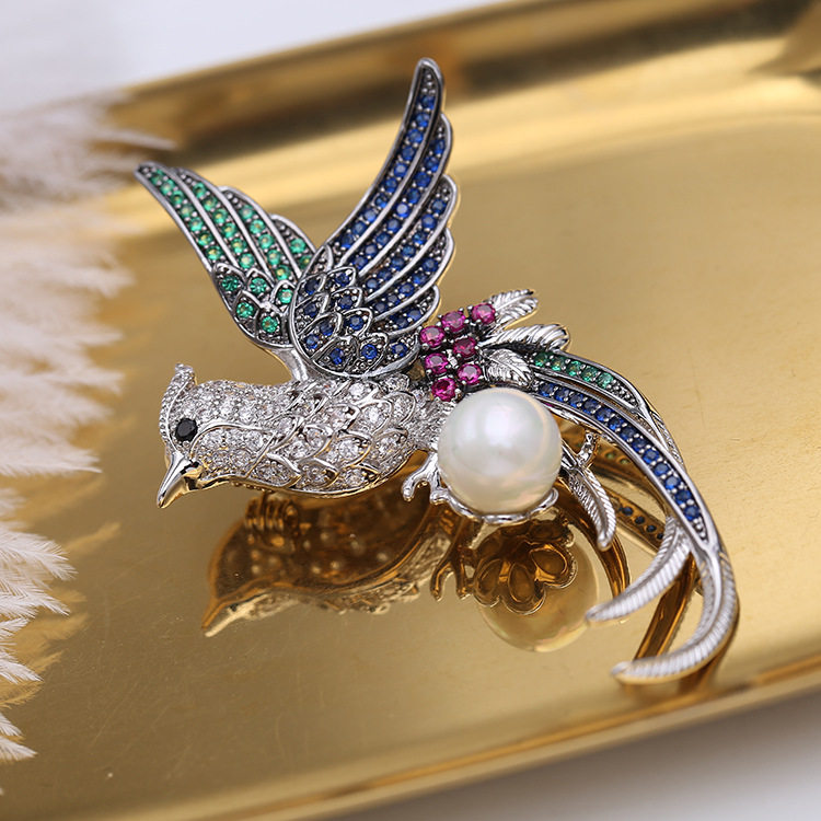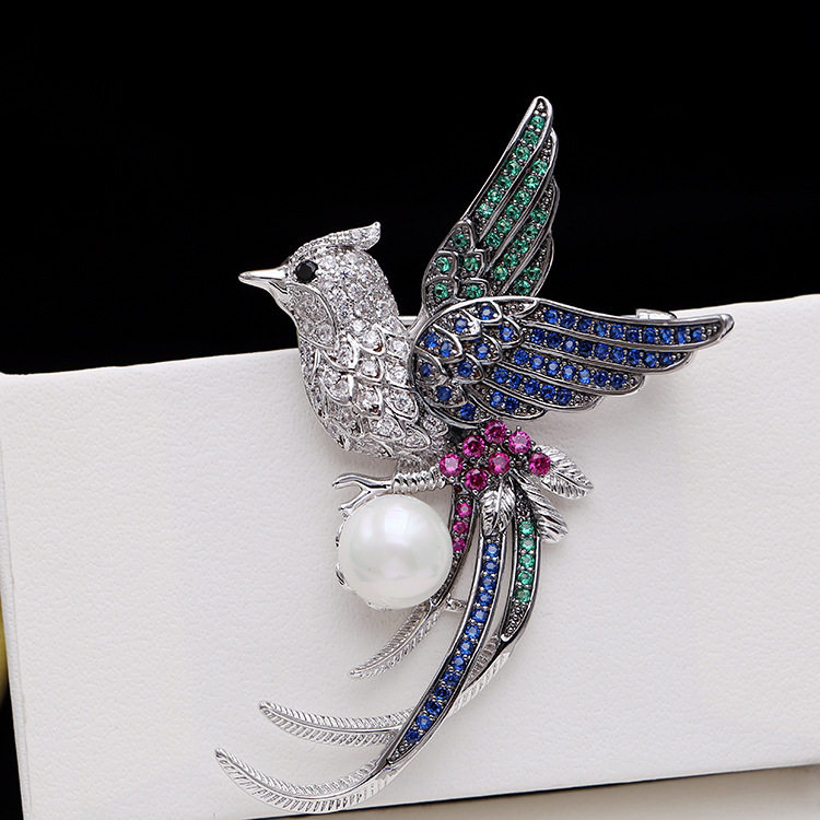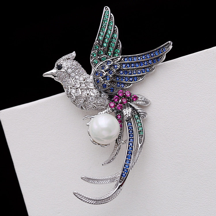 Феникс, высококлассная брошь на лацкан, куртка, булавка, бусины из жемчуга, аксессуар, инкрустировано бриллиантами, простой и элегантный дизайн