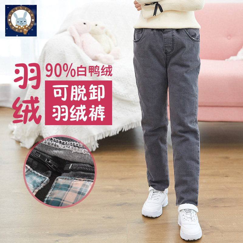 Детские штаны с пухом, джинсовый эластичный модный детский вкладыш, утиный пух, увеличенная толщина