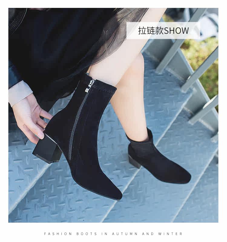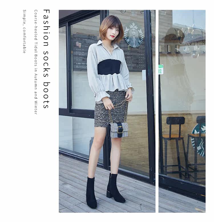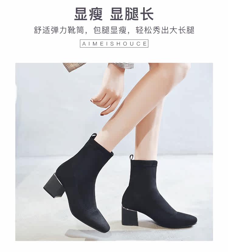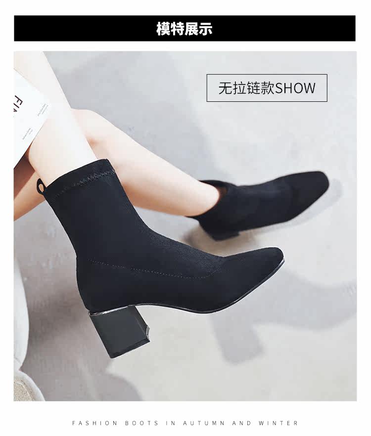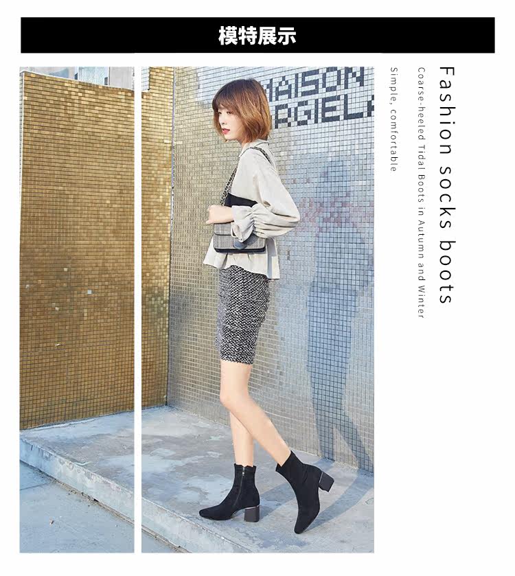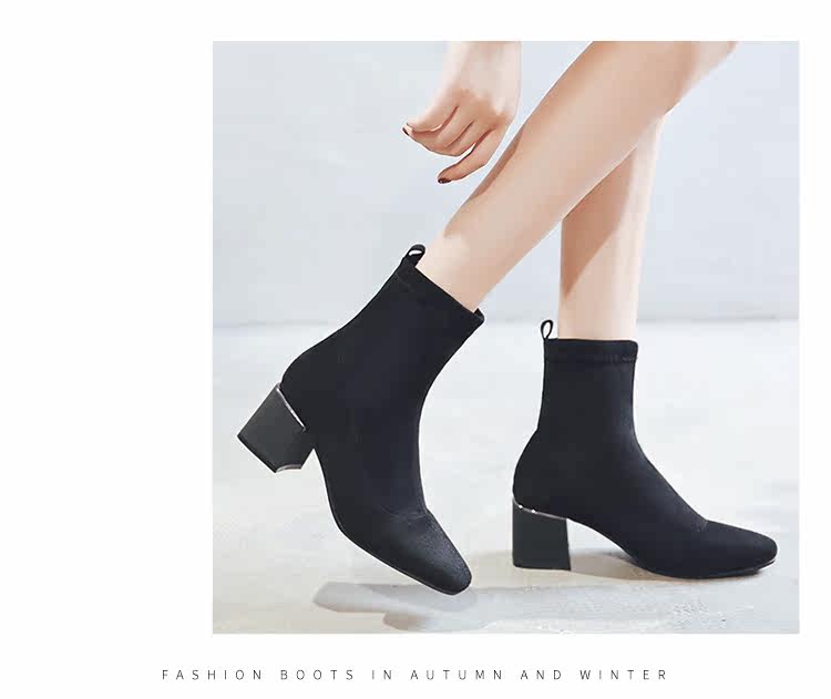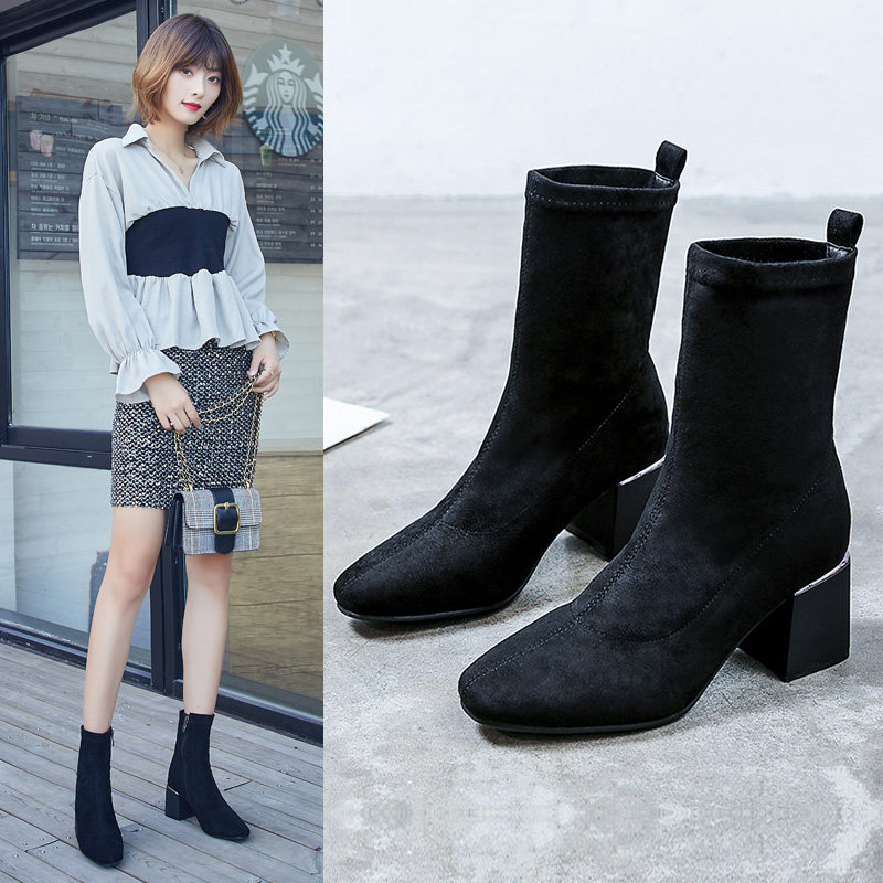 Женские ботинки на эластичных чулках, ботинки Мартин на толстом каблуке, модные короткие ботинки 33 размера, женские весенне-осенние одинарные ботинки, средний каблук, ботинки маленького размера, узкие ботинки