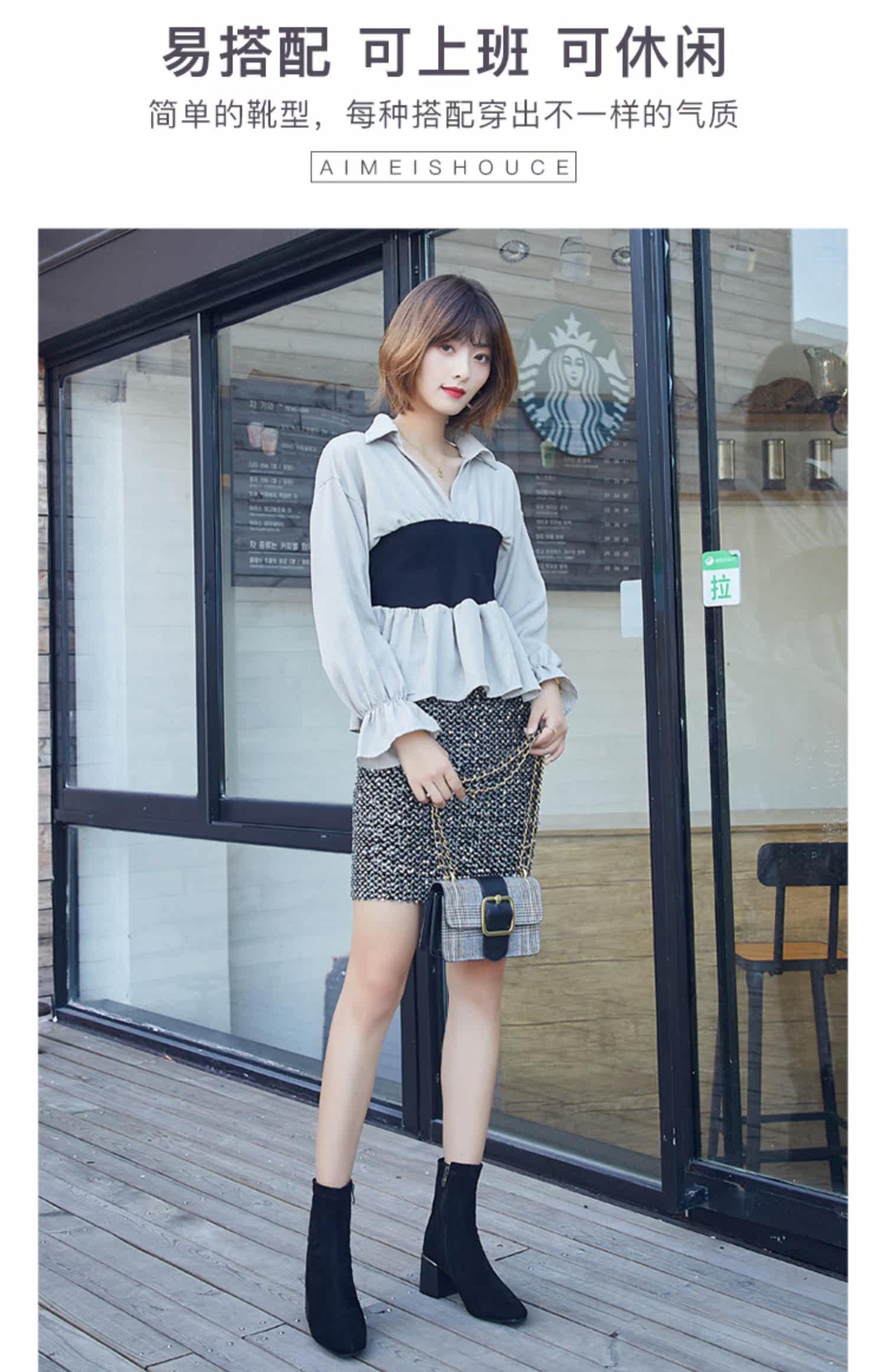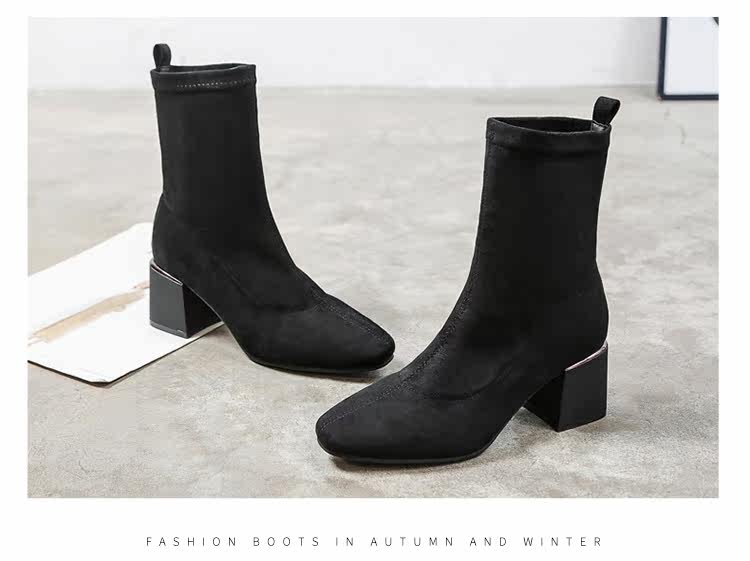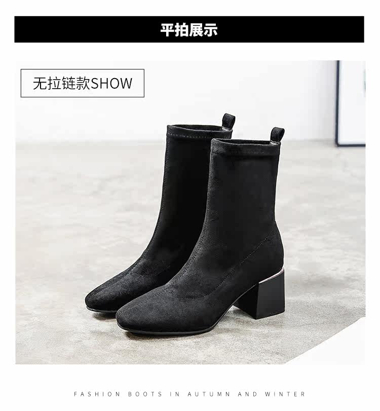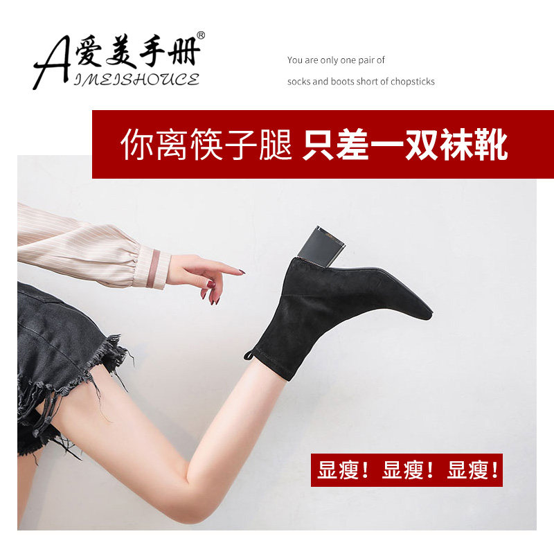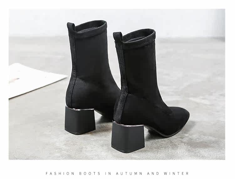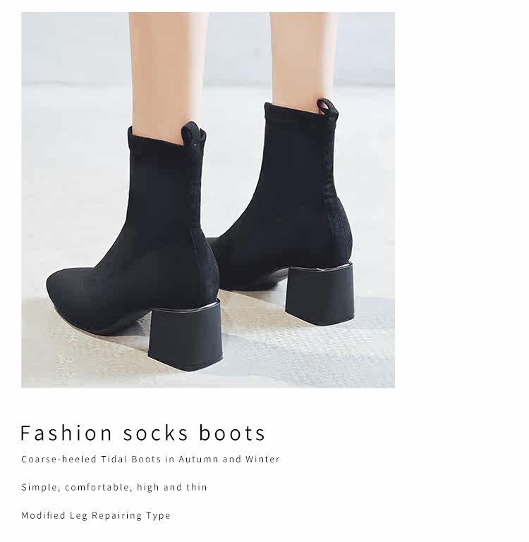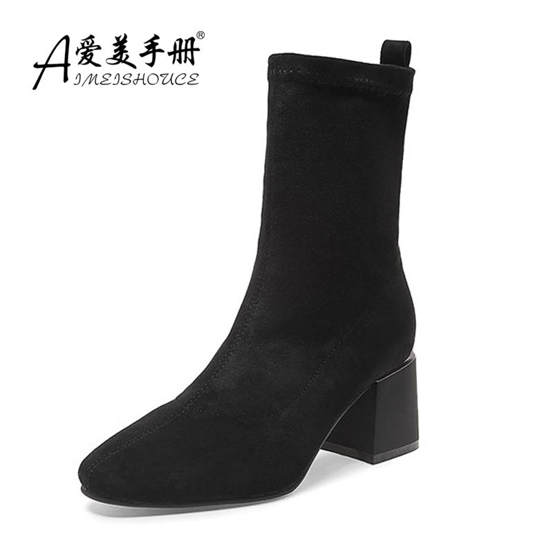 Женские ботинки на эластичных чулках, ботинки Мартин на толстом каблуке, модные короткие ботинки 33 размера, женские весенне-осенние одинарные ботинки, средний каблук, ботинки маленького размера, узкие ботинки